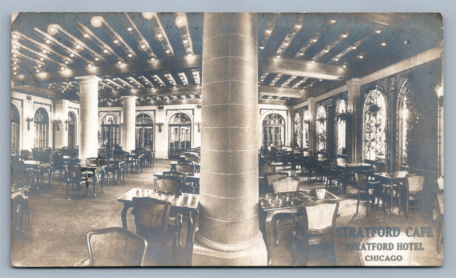 CHICAGO IL STRATFORD HOTEL CAFE INTERIOR ANTIQUE REAL PHOTO POSTCARD RPPC