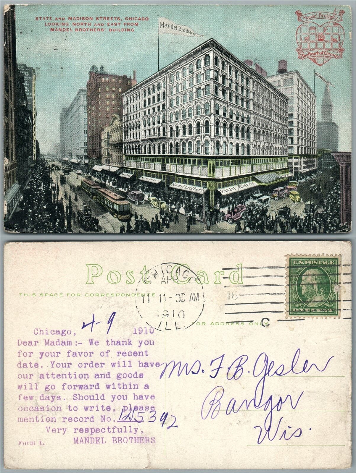 CHICAGO STATE & MADISON STREET FROM MANDEL BROS. BUILDING 1910 ANTIQUE POSTCARD