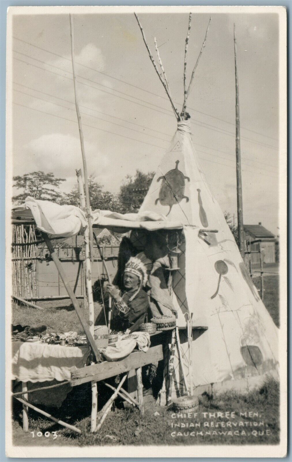 CHIEF THREE MEN INDIAN RESERVATION CAUGHNAWAGA ANTIQUE REAL PHOTO POSTCARD RPPC