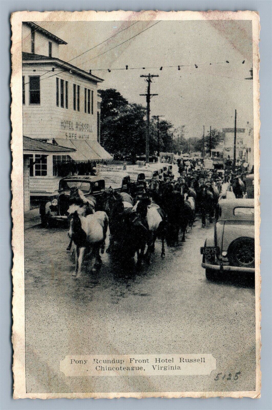 CHINCOTEAQUE VA PONY ROUNDUP FRONT HOTEL RUSSEL VINTAGE POSTCARD
