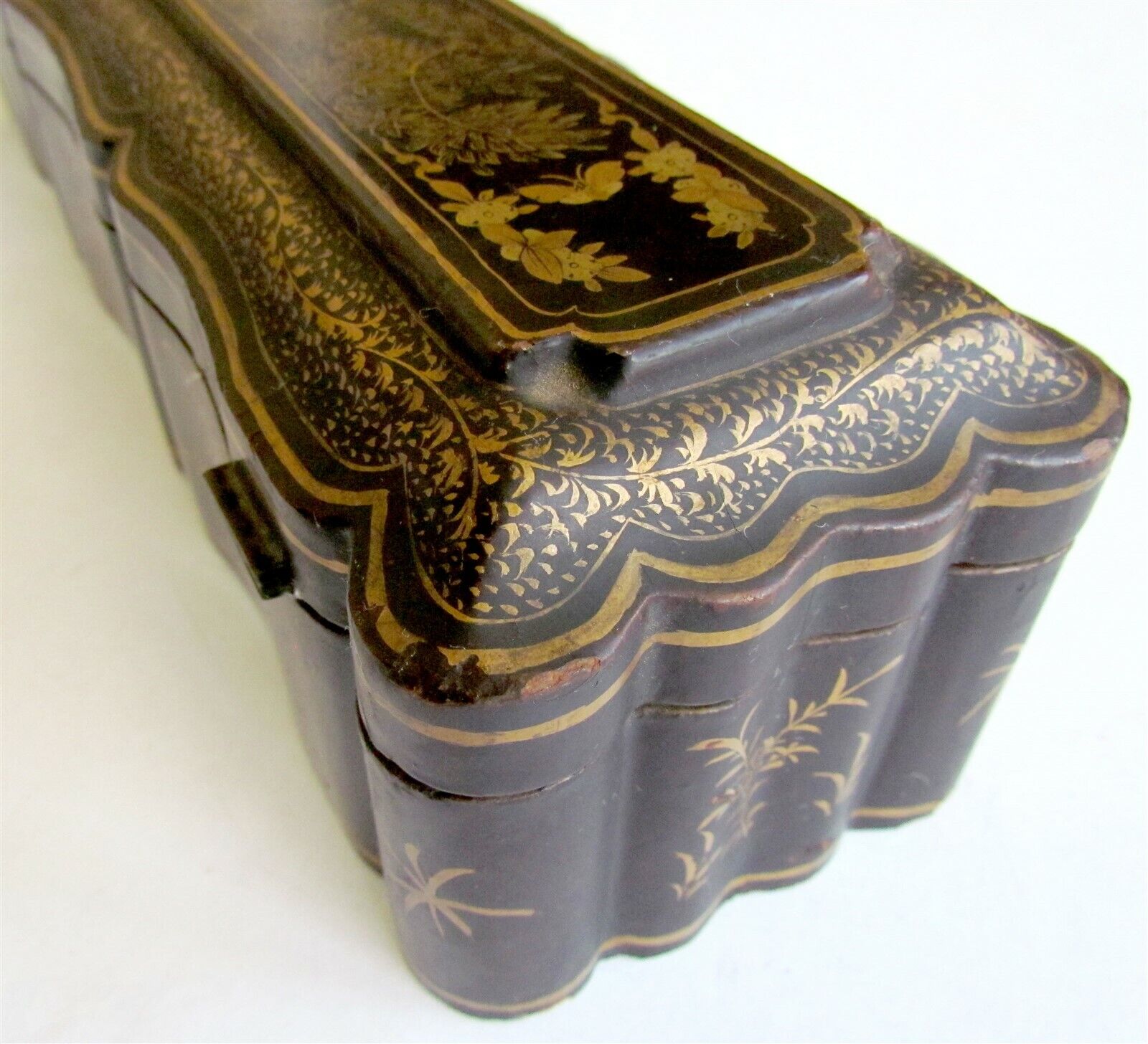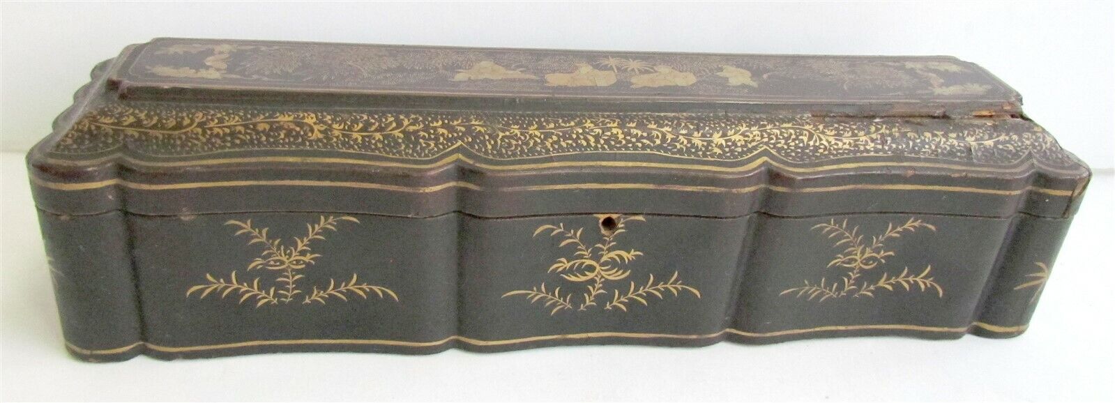 CHINESE or JAPANESE ANTIQUE ORIENTAL ASIAN LACQUER BOX w/ LOCK asian