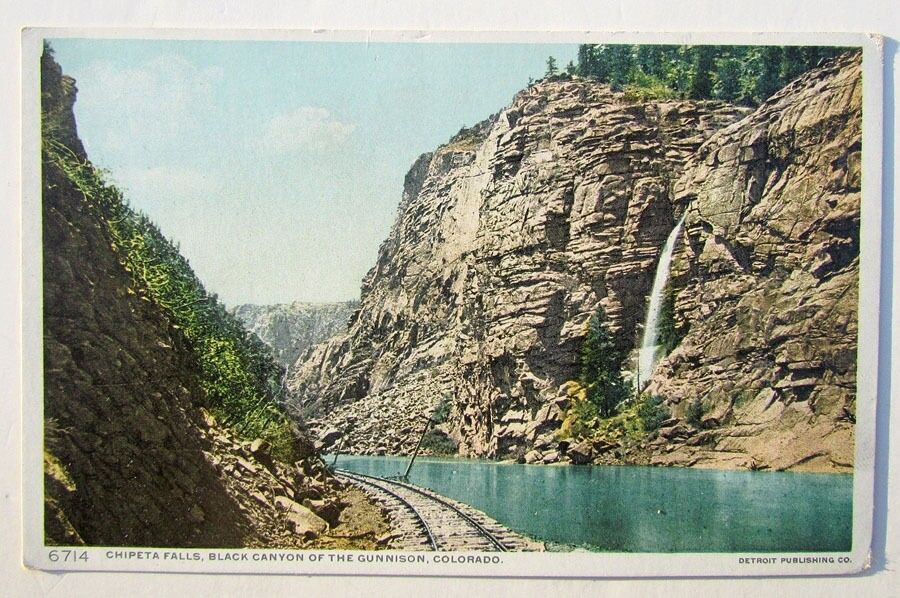 CHIPETA FALLS BLACK CANYON GUNNISON COLORADO RAILROAD railway ANTIQUE POSTCARD