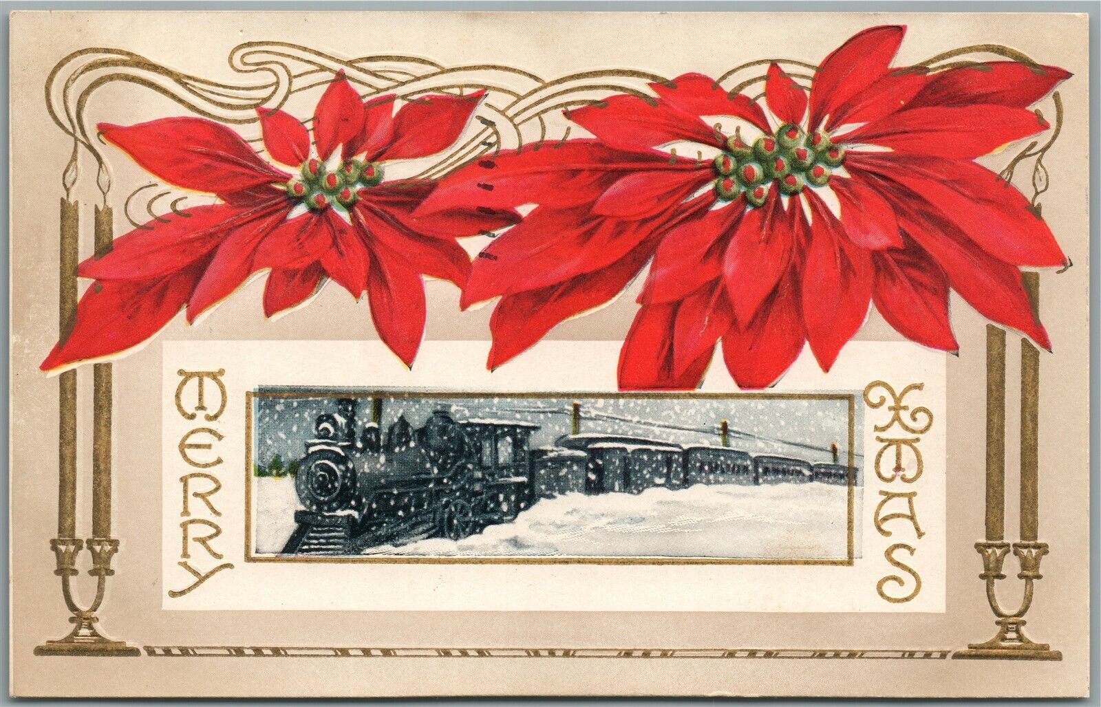 CHRISTMAS ANTIQUE POSTCARD w/ TRAIN RAILROAD