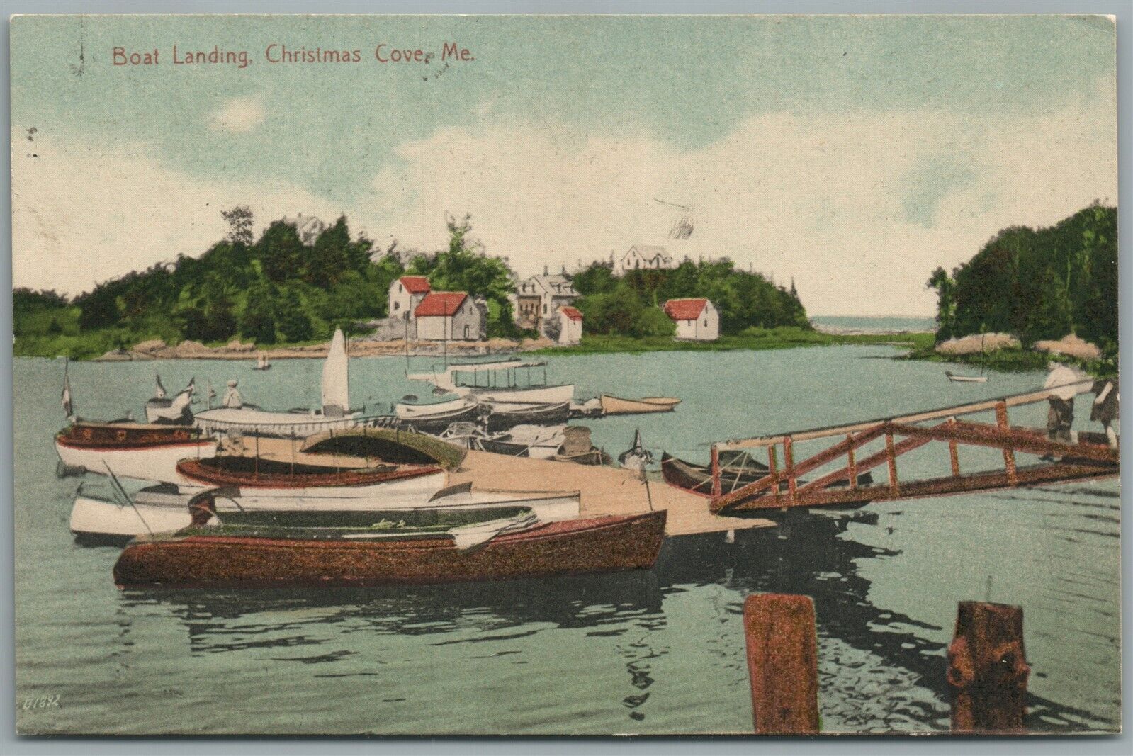 CHRISTMAS COVE ME BOAT LANDING ANTIQUE POSTCARD