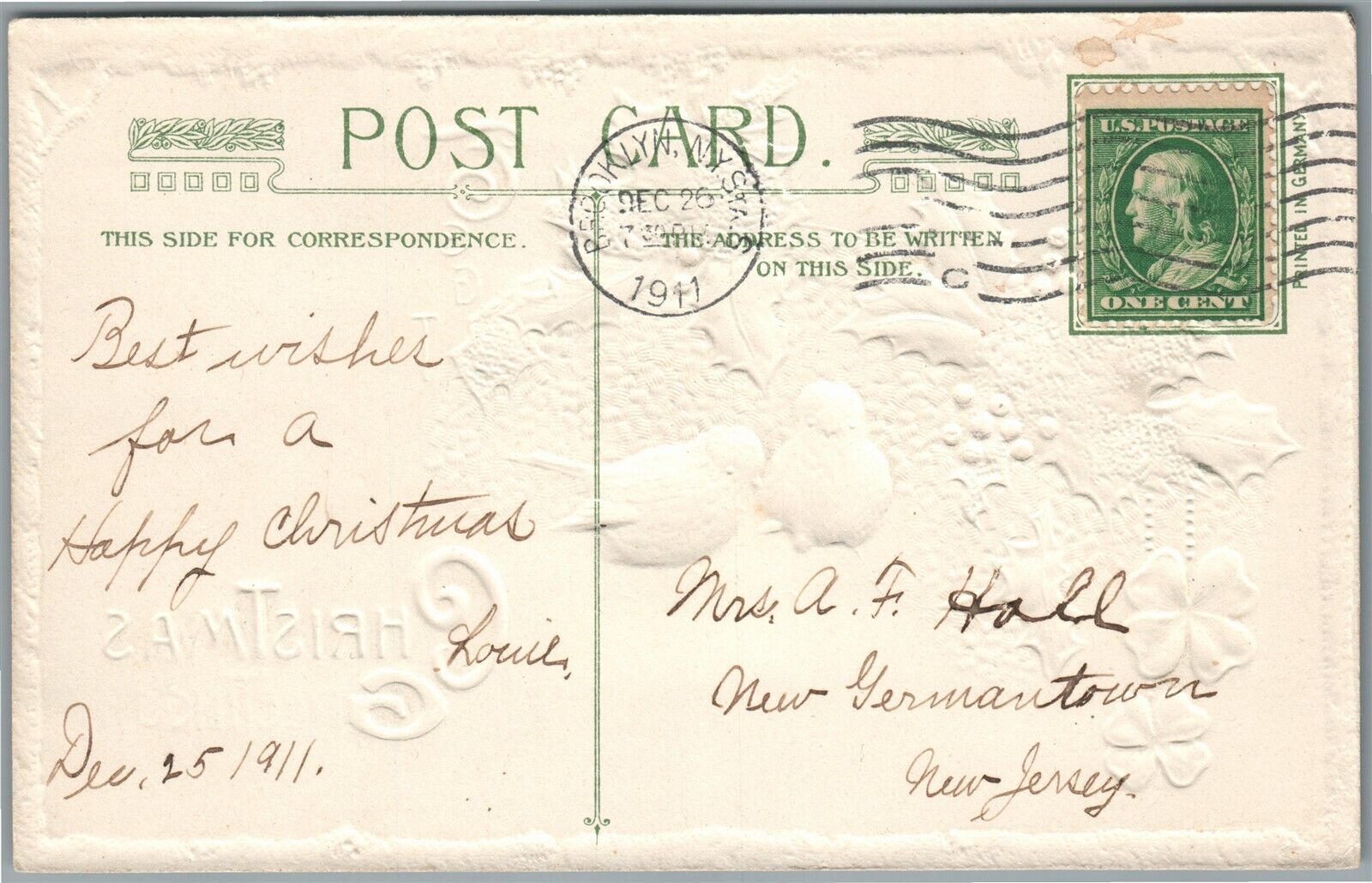 CHRISTMAS GREETINGS JOHN WINSCH 1911 ANTIQUE POSTCARD w/ BIRDS