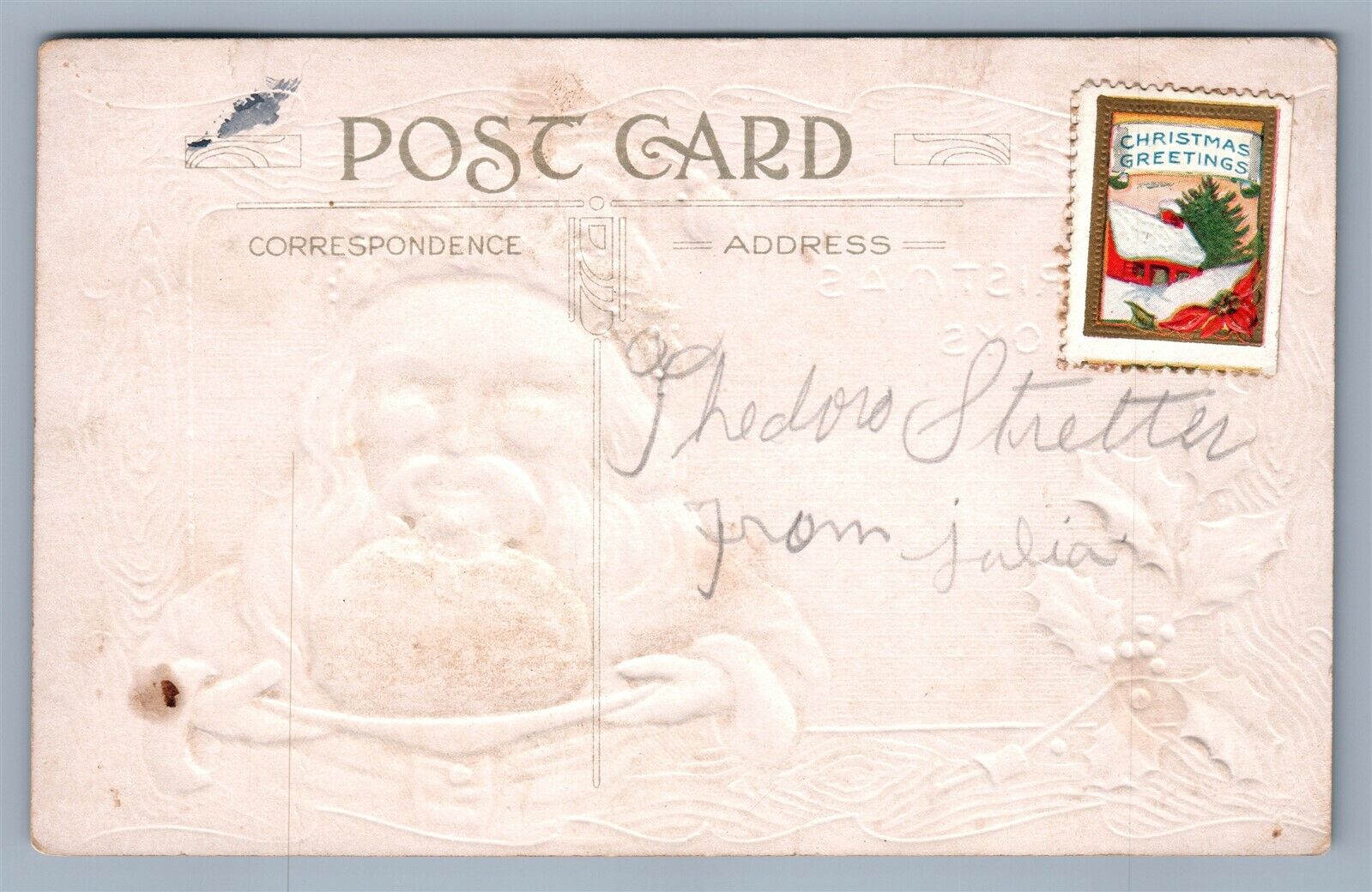 CHRISTMAS JOYS EMBOSSED ANTIQUE POSTCARD w/ SANTA