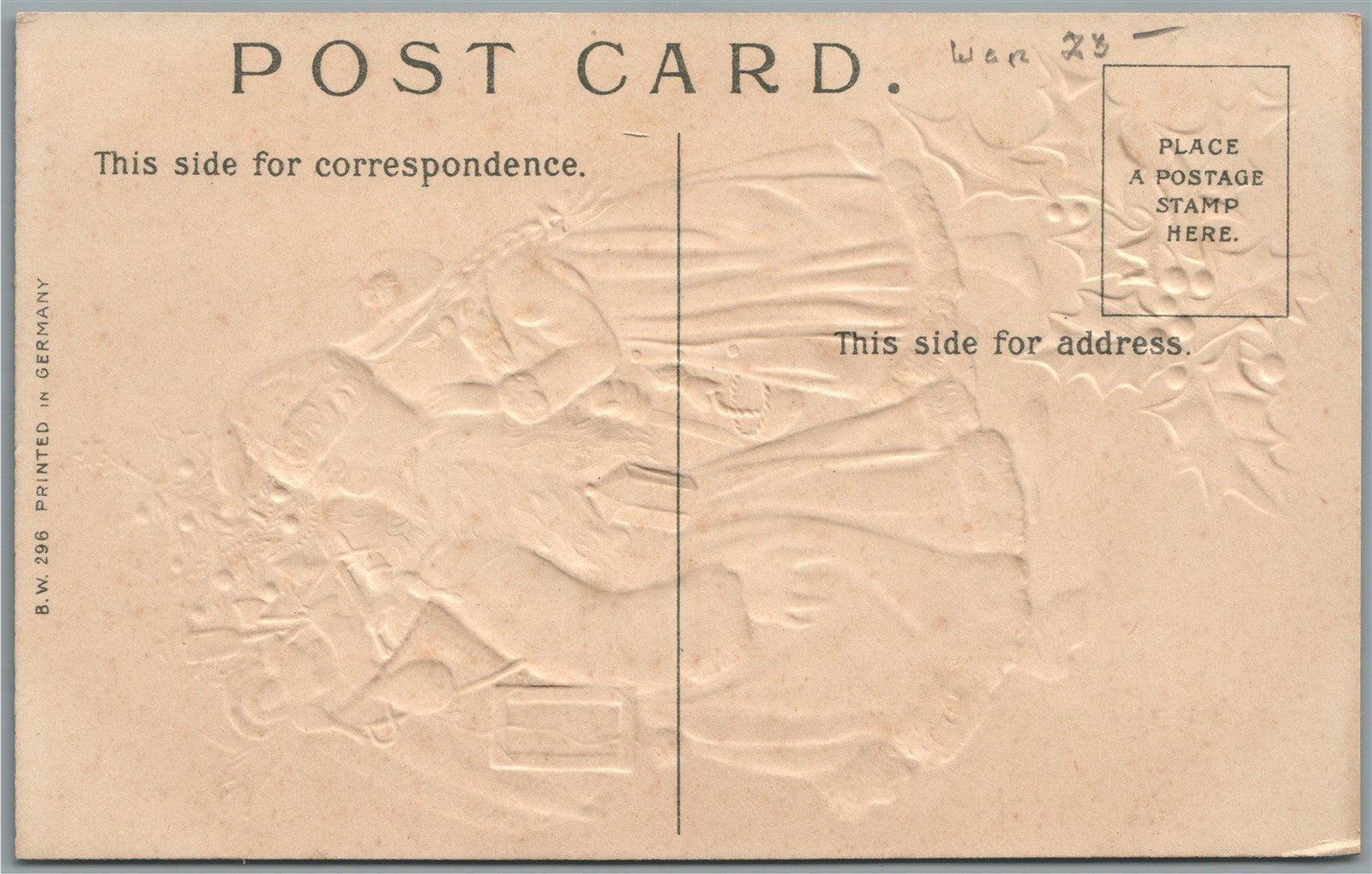 CHRISTMAS SANTA in GREEN ROBE ANTIQUE POSTCARD