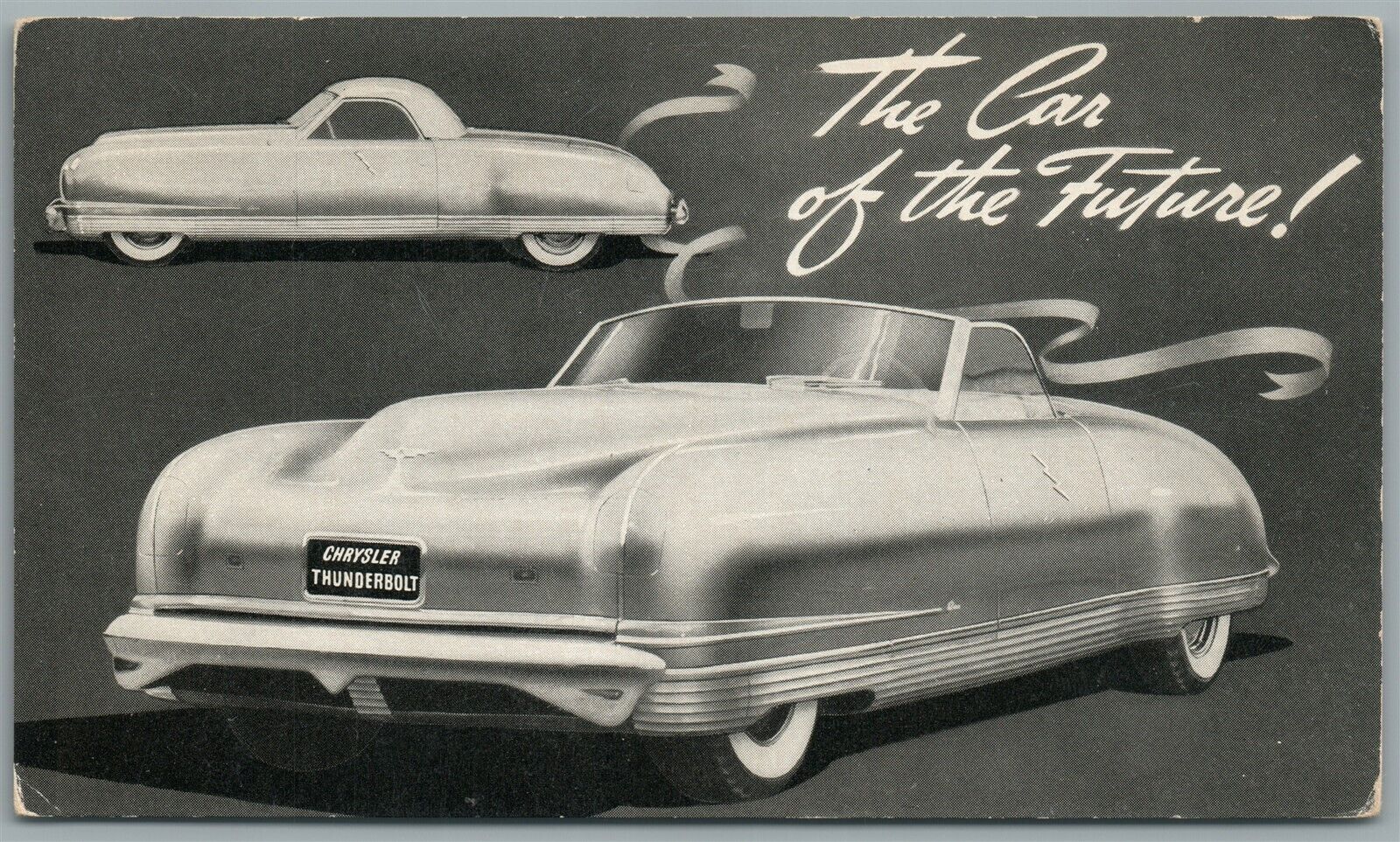 CHRYSLER THUNDERBOLT CAR OF THE FUTURE ADVERISING VINTAGE POSTCARD