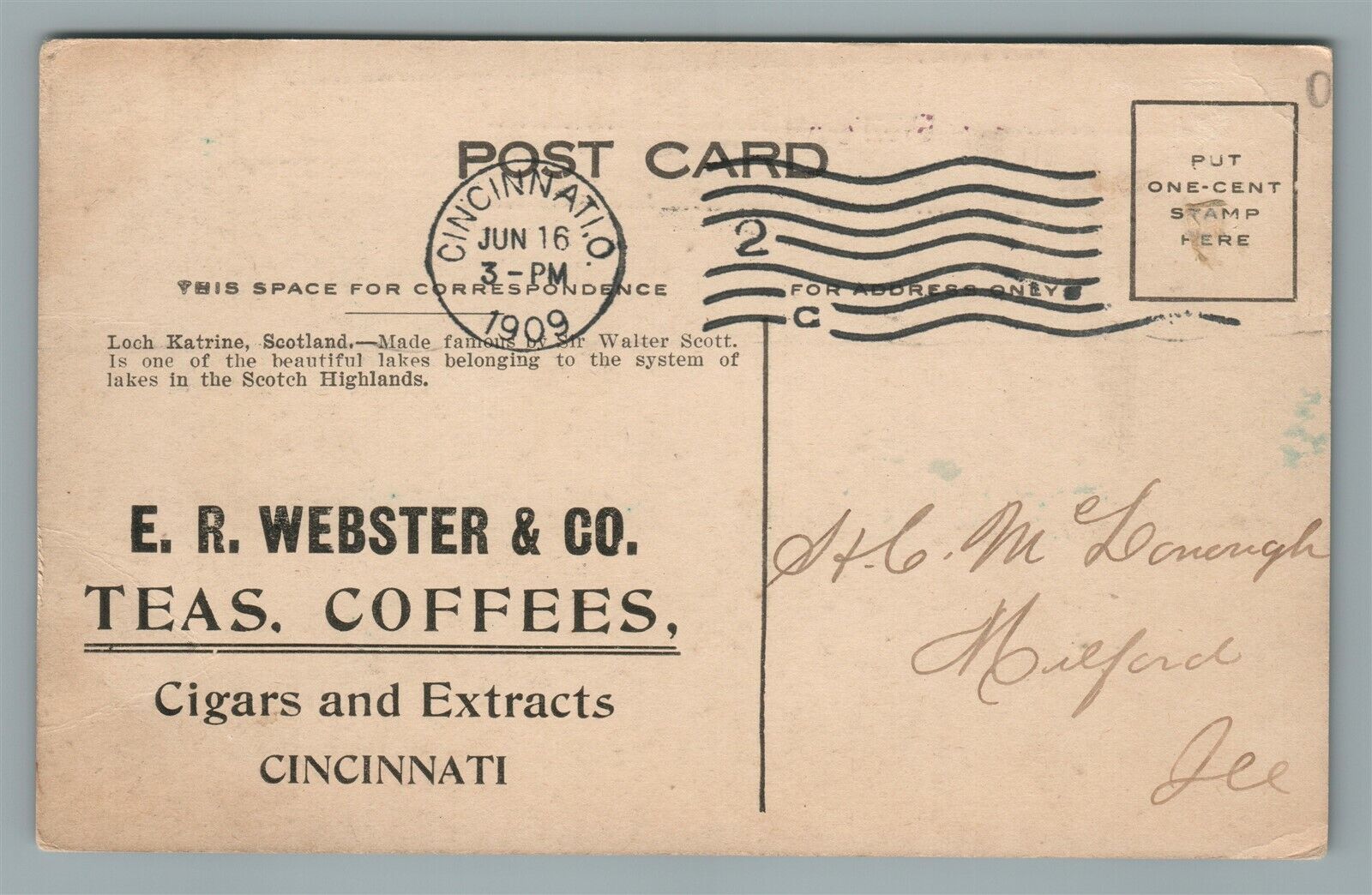 CINCINNATI OH TEA COFFEEE CIGARS WEBSTER CO. ADVERTISING 1909 ANTIQUE POSTCARD