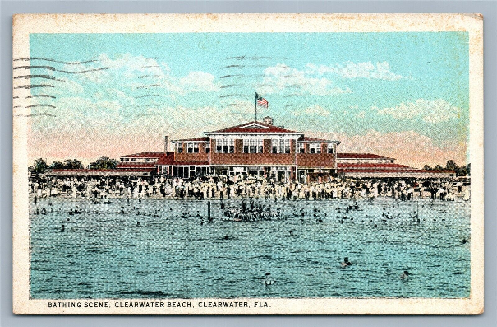 CLEARWATER FL BATHING SCENE BEACH ANTIQUE POSTCARD