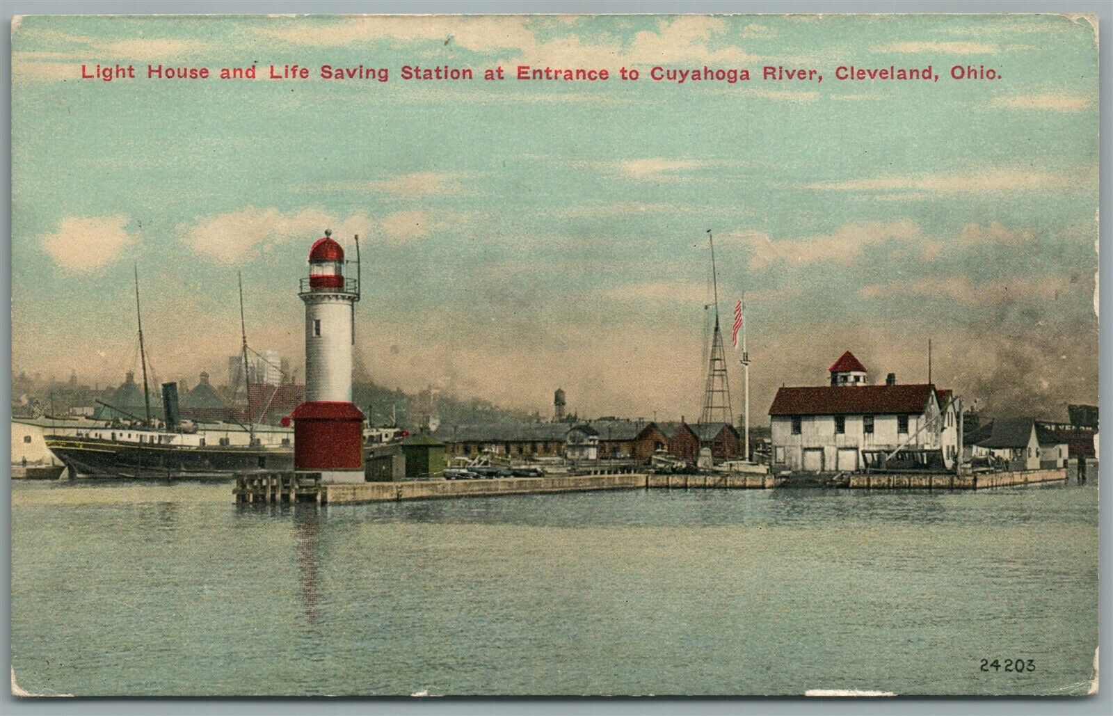 CLEVELAND OH LIGHT HOUSE & LIFE SAVING STATION ANTIQUE POSTCARD