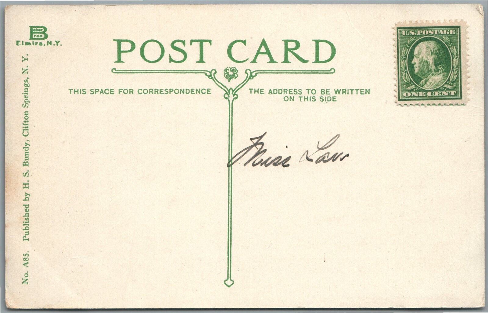 CLIFTON SPRINGS NY LOWER MAIN STREET ANTIQUE POSTCARD