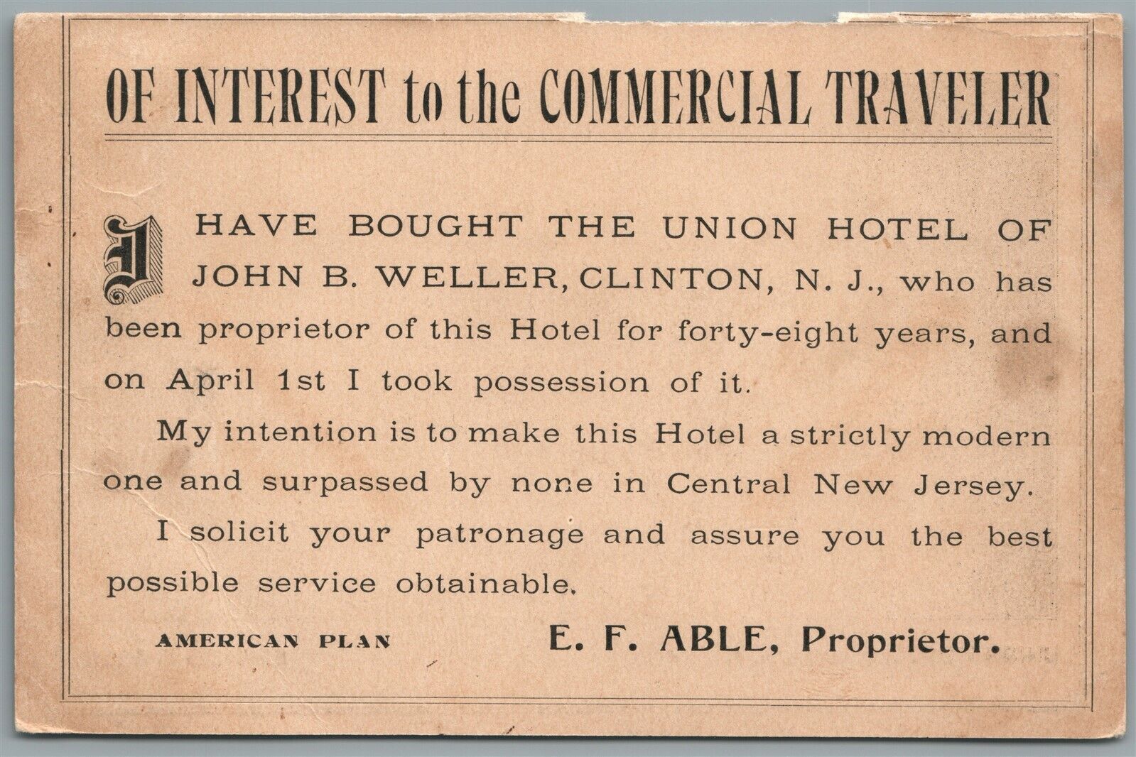 CLINTON NJ UNION HOTEL ADVERTISING ANTIQUE POSTCARD