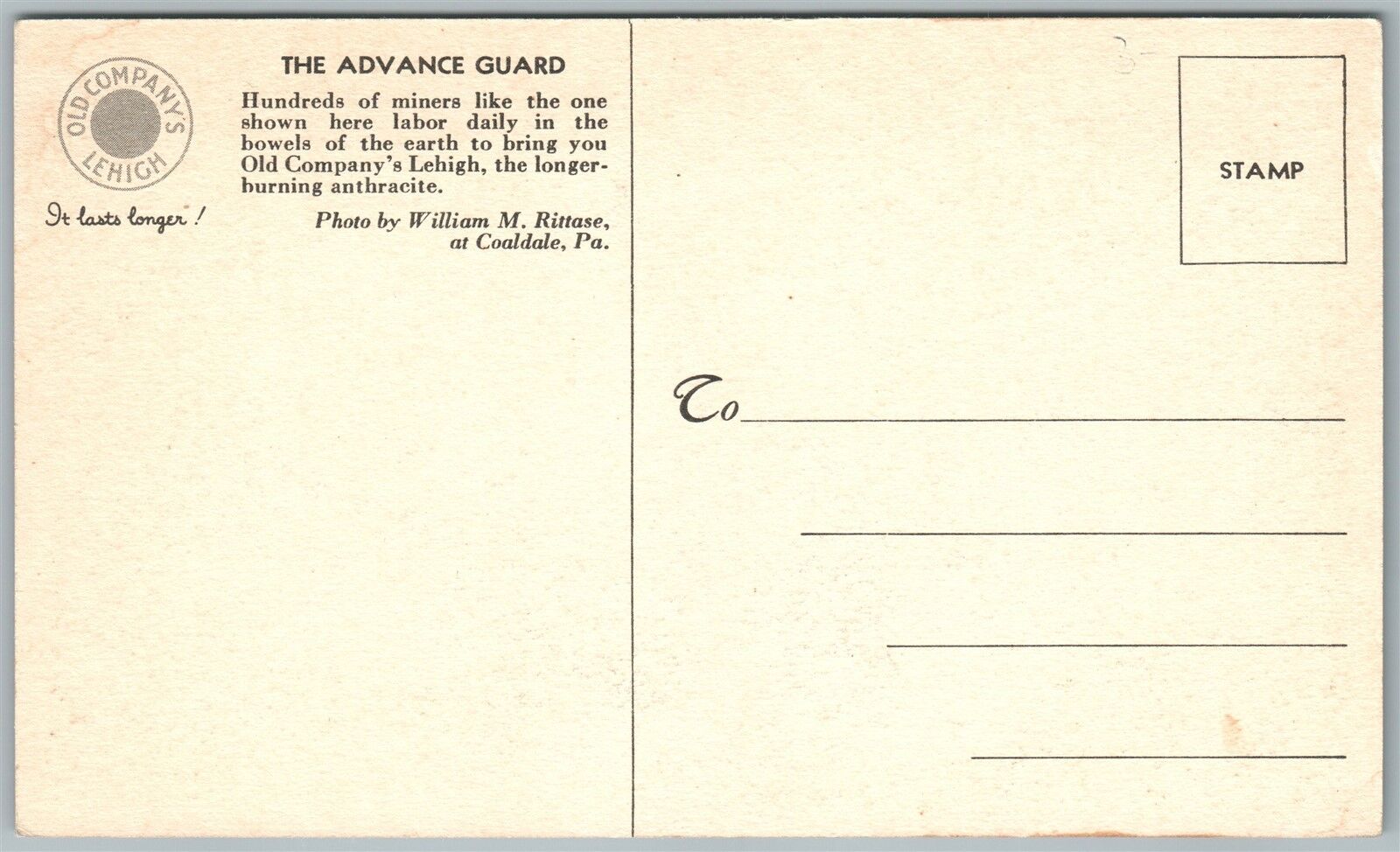 COALDALE PA OLD COMPANY'S LEHIGH PA VINTAGE POSTCARD