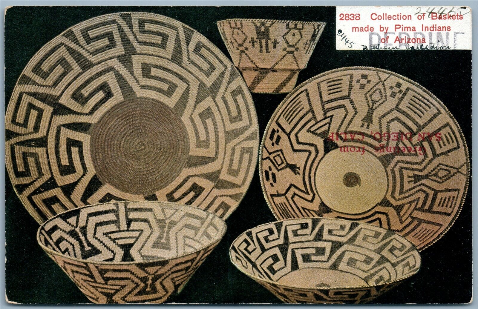 COLLECTION OF BASKETS by PIMA INDIANS ARIZONA ANTIQUE UNDIVIDED POSTCARD