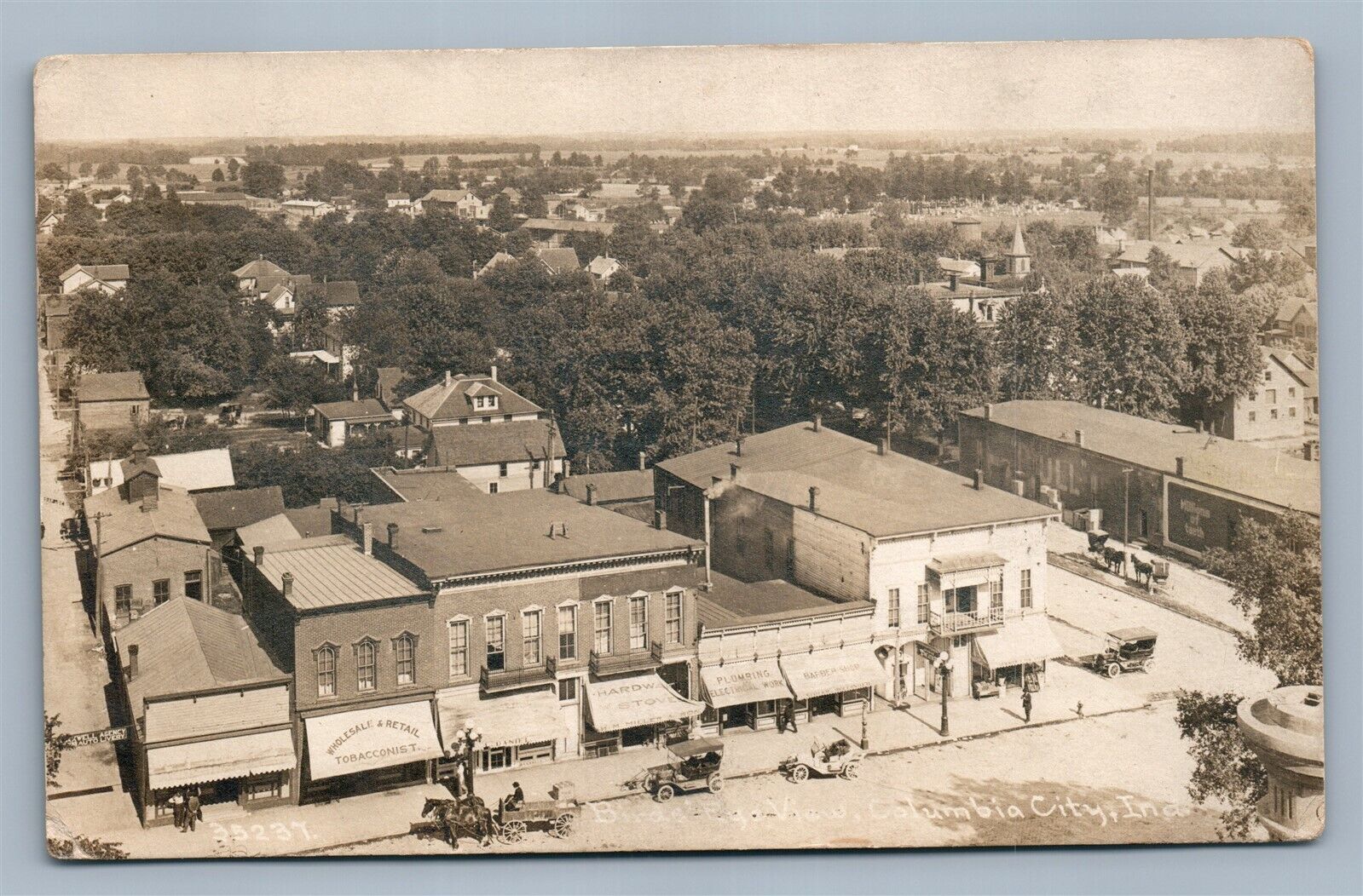 COLUMBIA CITY IND BIRDS EYE STREET VIEW SIGNS ANTIQUE REAL PHOTO POSTCARD RPPC
