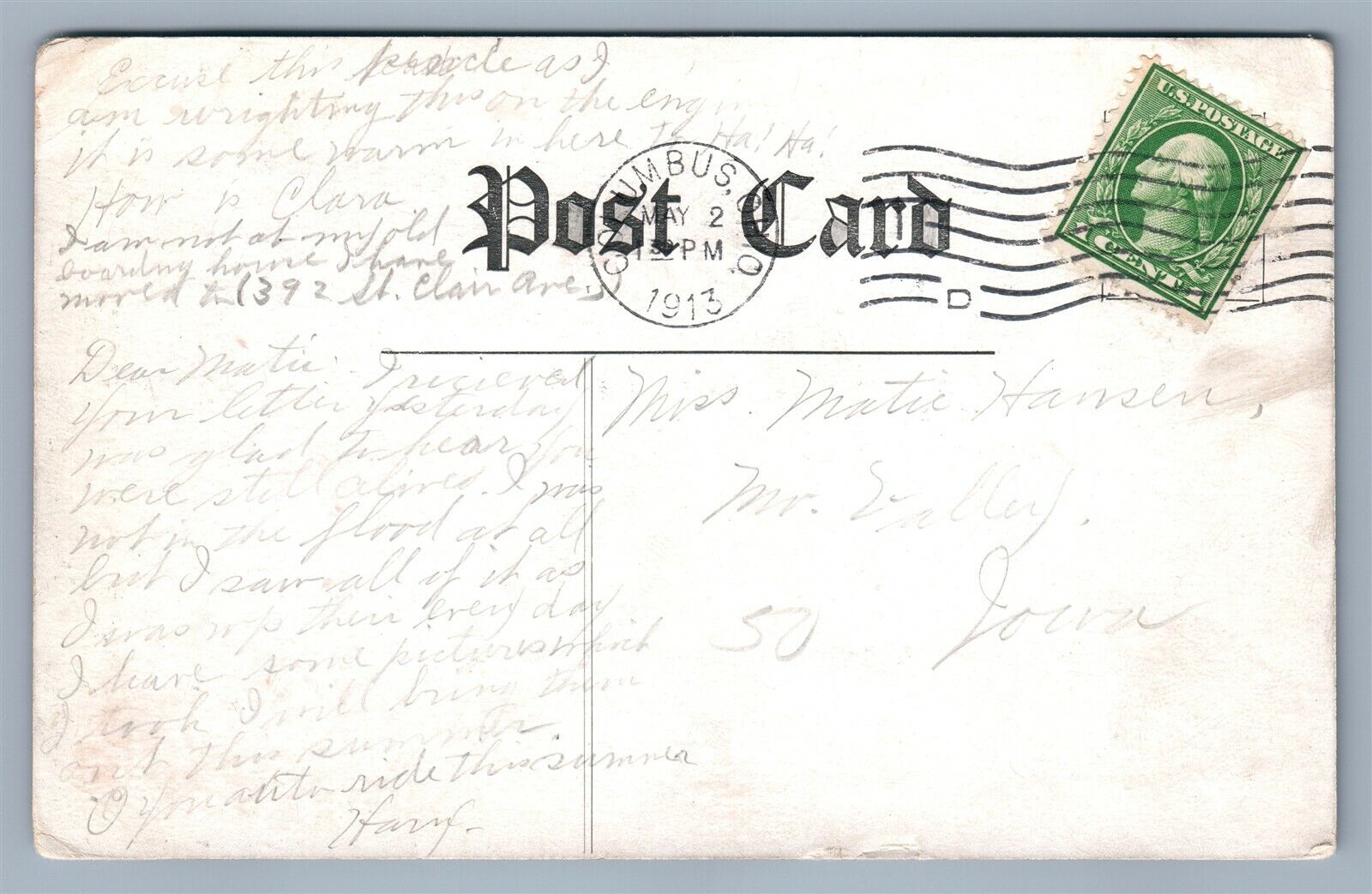 COLUMBUS OH THIRD STREET NEAR CRESCENT FLOOD 1913 ANTIQUE POSTCARD