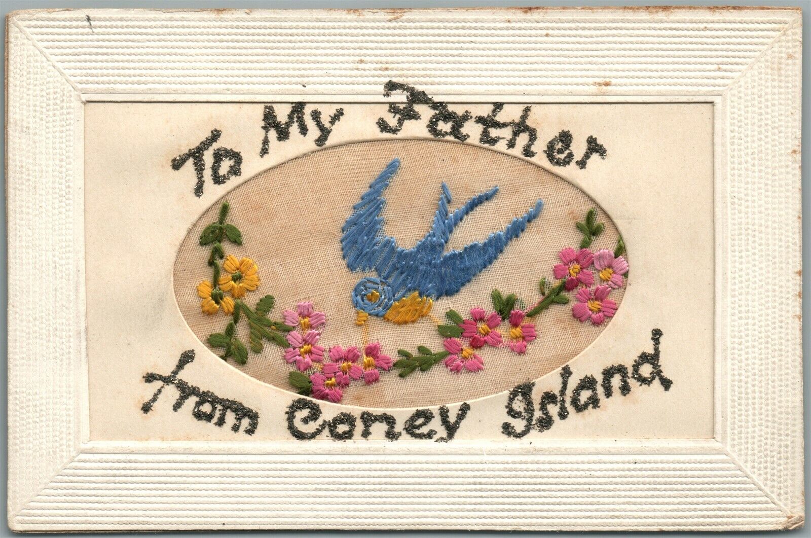 CONEY ISLAND BROOKLYN NY EMBROIDERED ANTIQUE POSTCARD