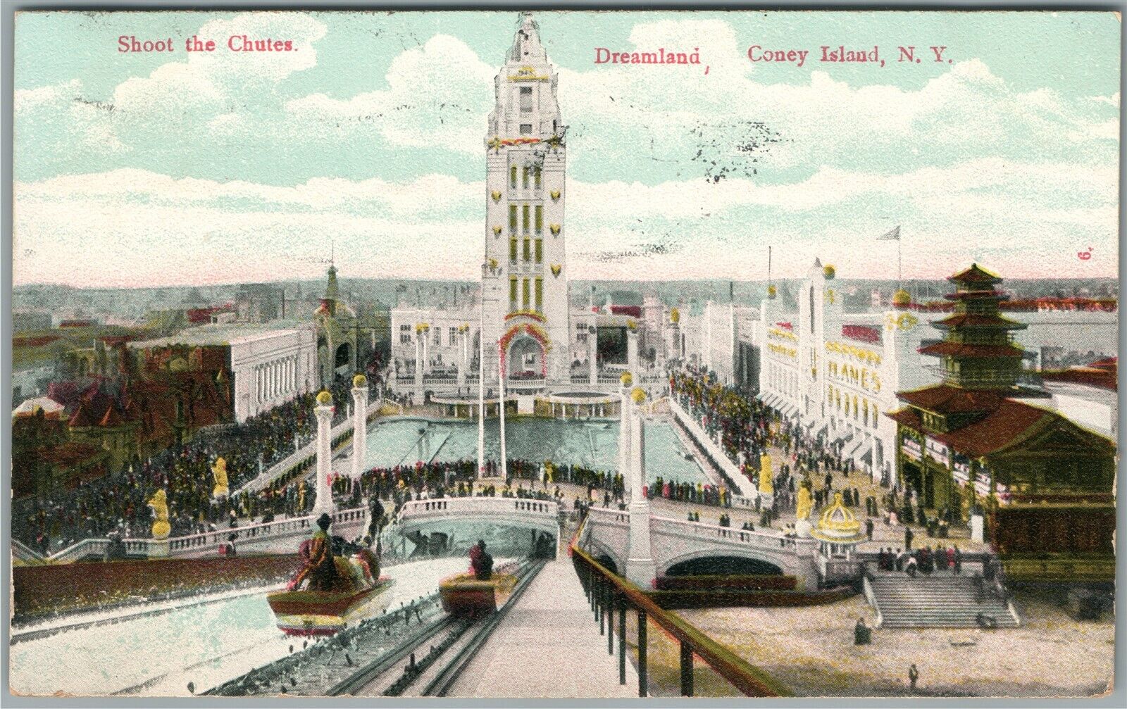 CONEY ISLAND NY DREAMLAND SHOOT THE CHUTES ANTIQUE POSTCARD