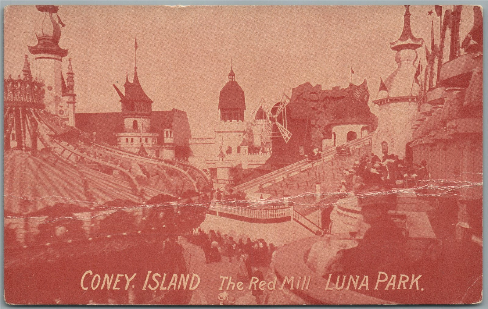 CONEY ISLAND NY LUNA PARK RED MILL ANTIQUE POSTCARD