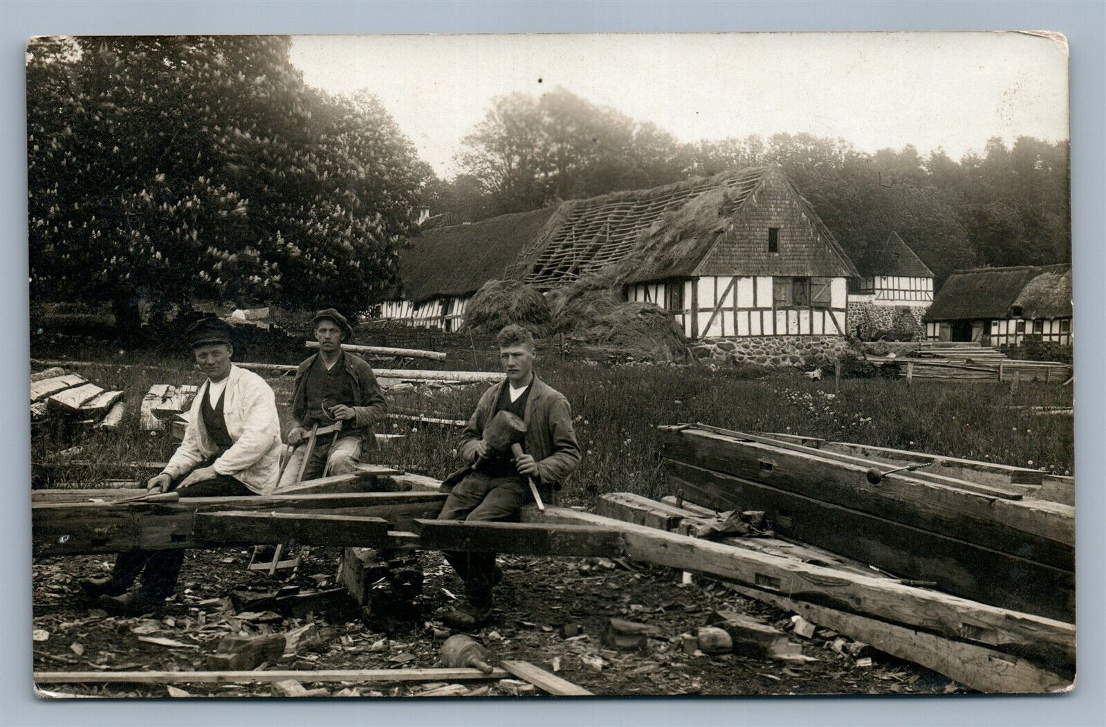 CONSTRUCTION WORKERS CARPENTERS ANTIQUE REAL PHOTO POSTCARD RPPC