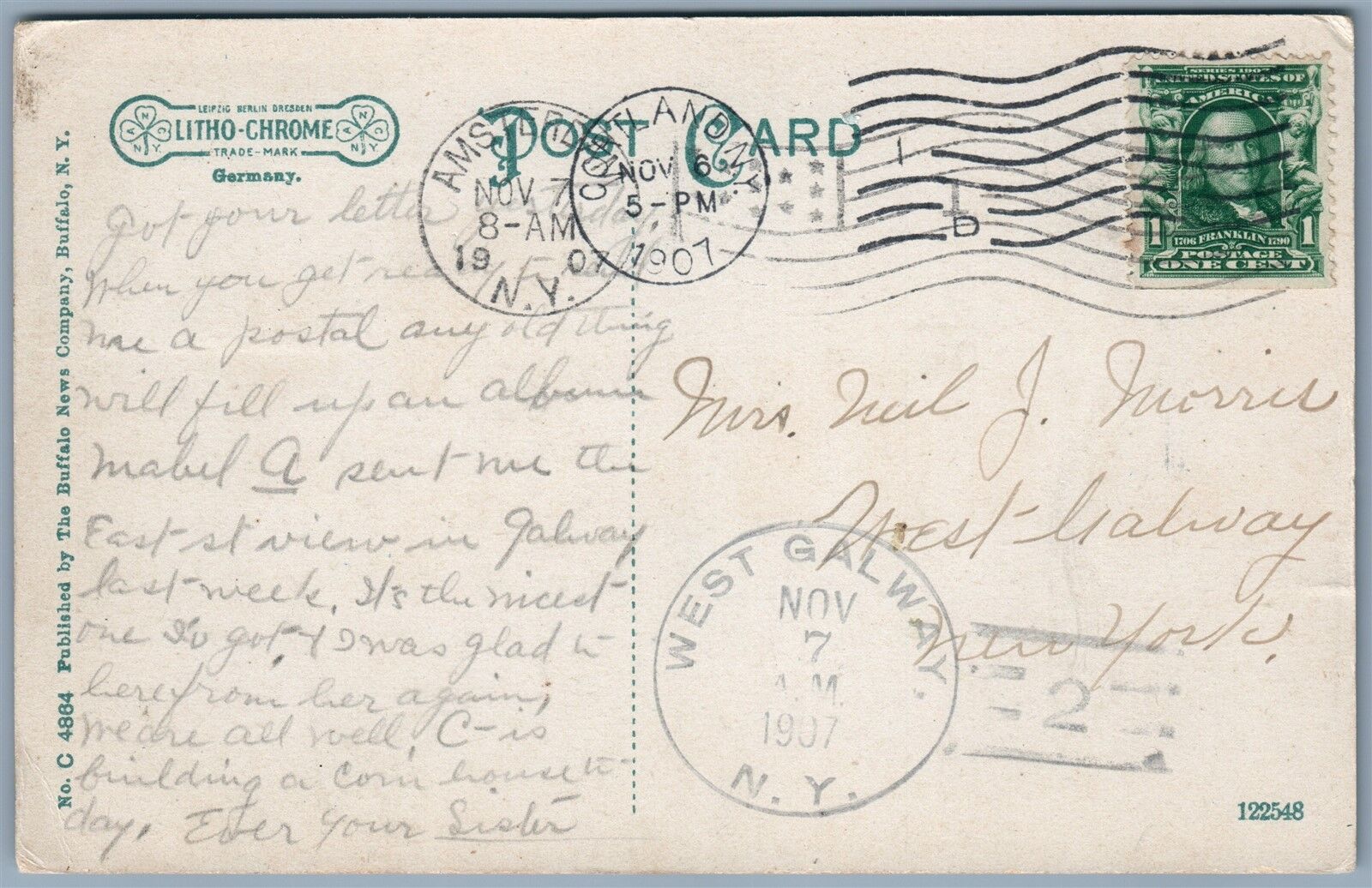 CORTLAND NY RAILROAD STATION 1907 ANTIQUE POSTCARD railway train depot