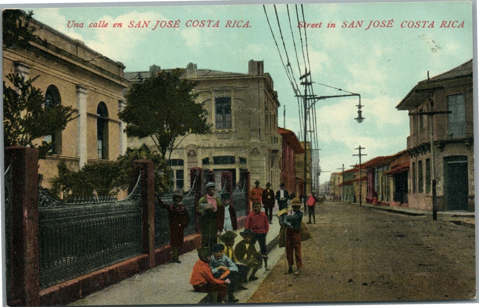 COSTA RICA STREET in SAN JOSE ANTIQUE POSTCARD