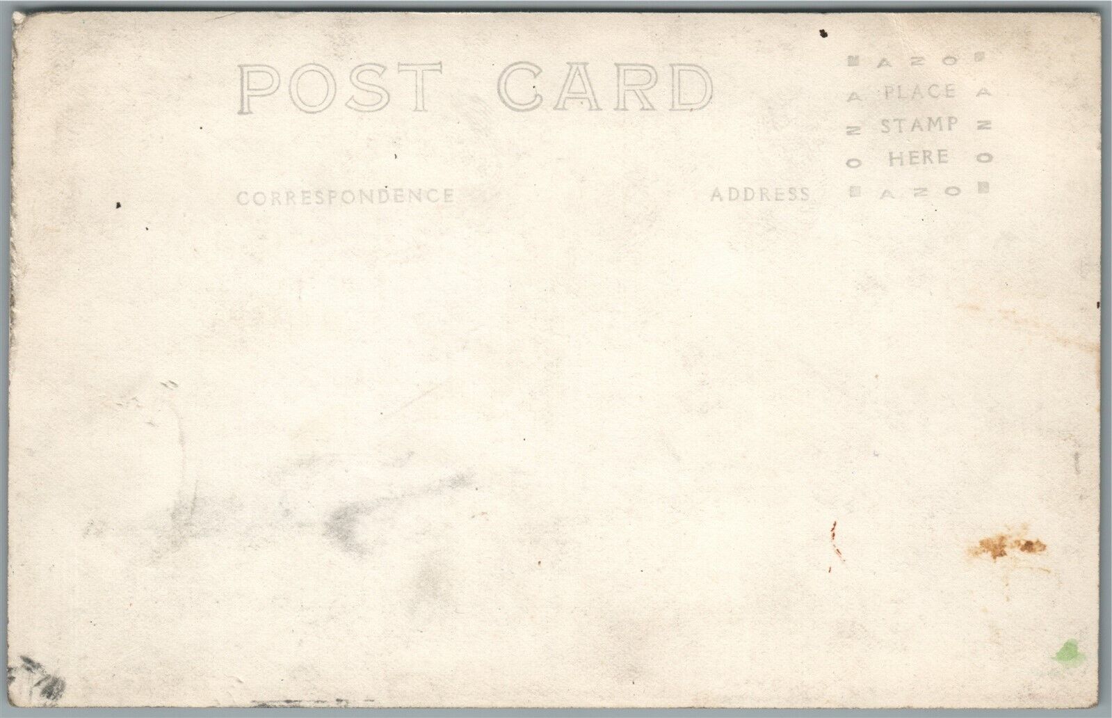 COUPLE w/ DOG HAND COLORED ANTIQUE REAL PHOTO POSTCARD RPPC