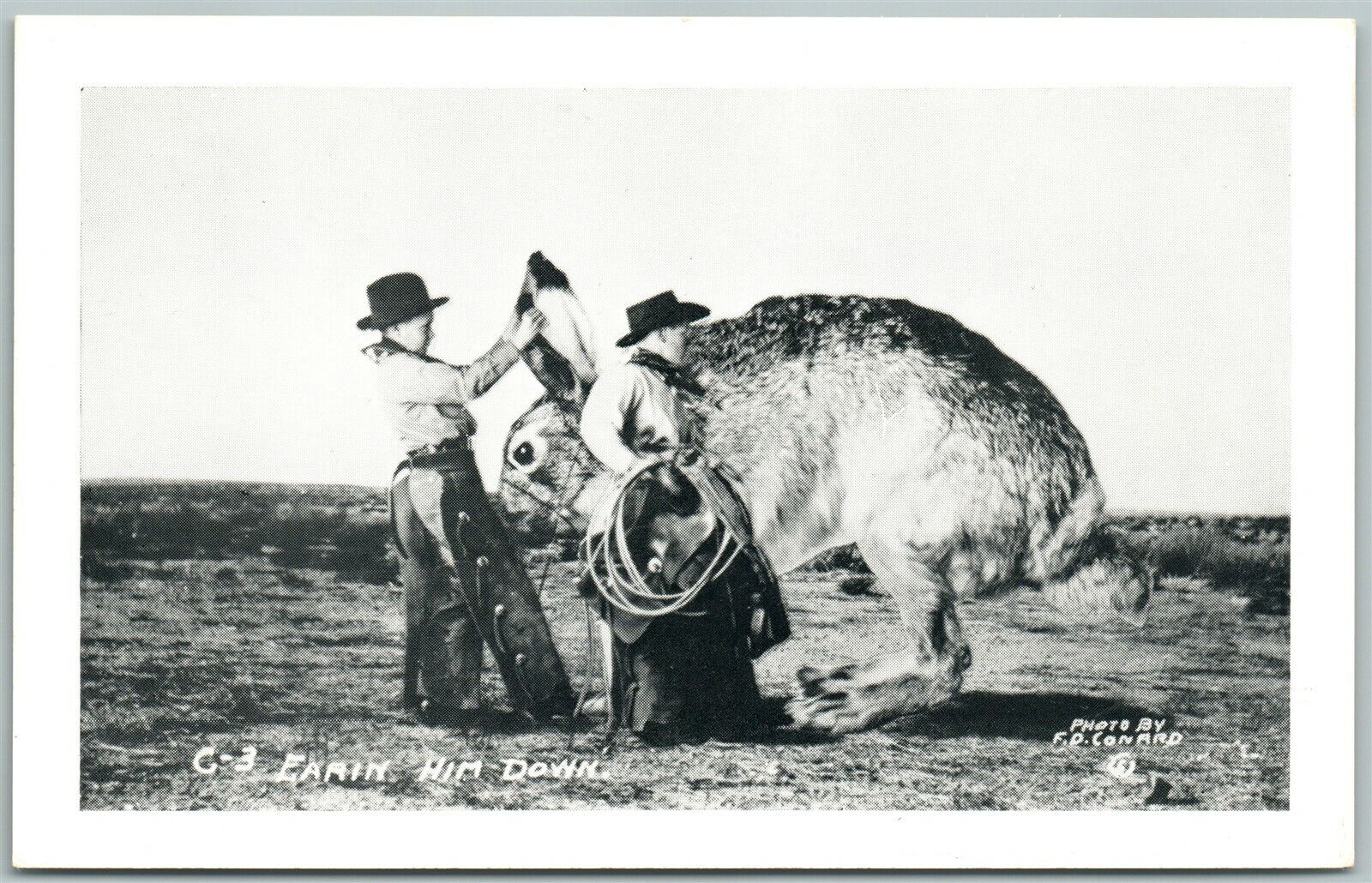 COWBOYS w/ RABBIT EXAGGERATED VINTAGE POSTCARD