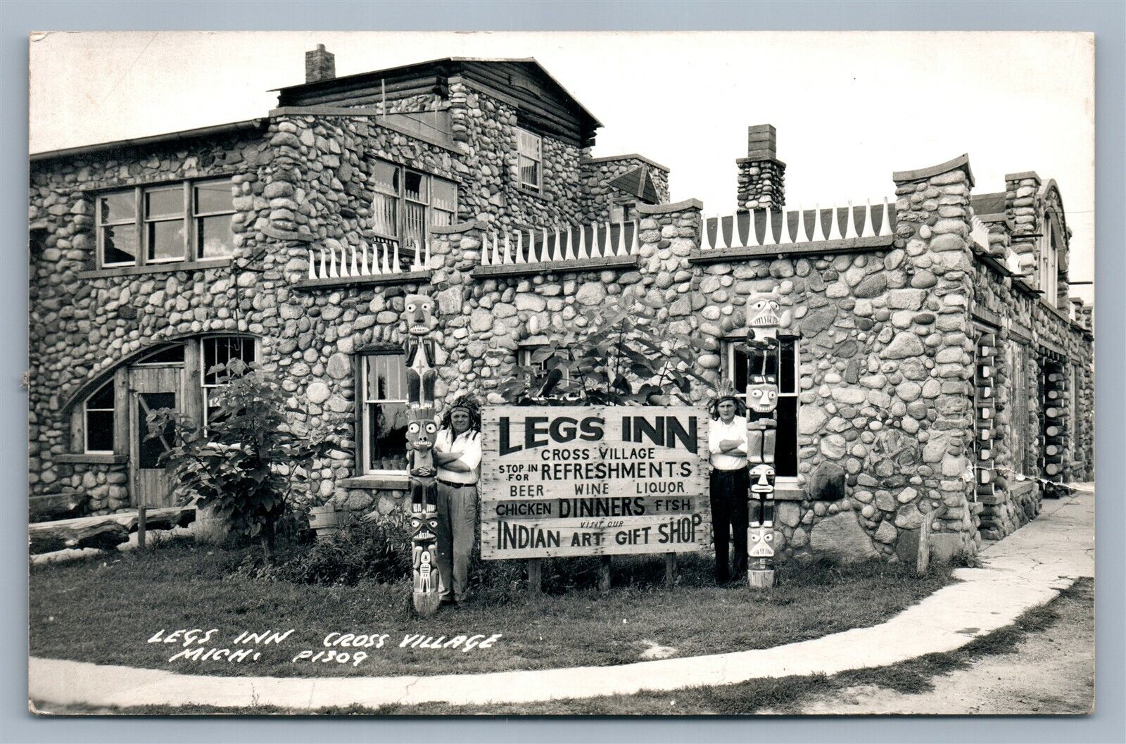 CROSS VILLAGE MI LEGS INN VINTAGE REAL PHOTO POSTCARD RPPC