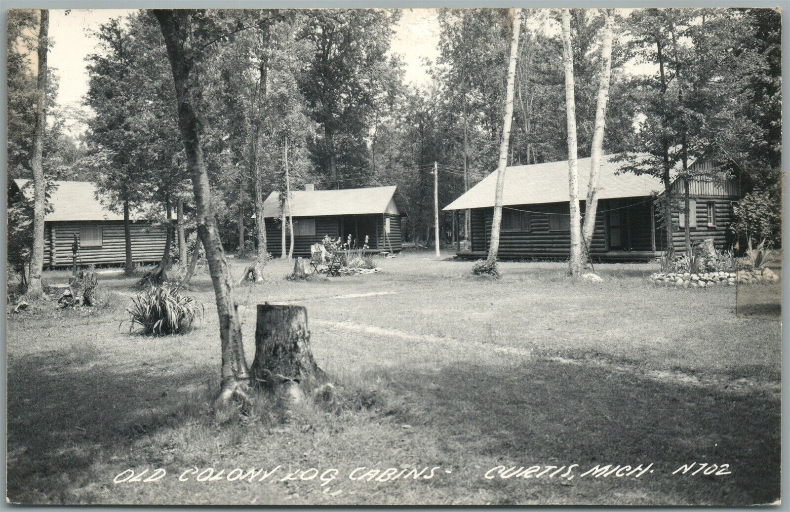 CURTIS MI OLD COLONY LOG CABINS VINTAGE REAL PHOTO POSTCARD RPPC