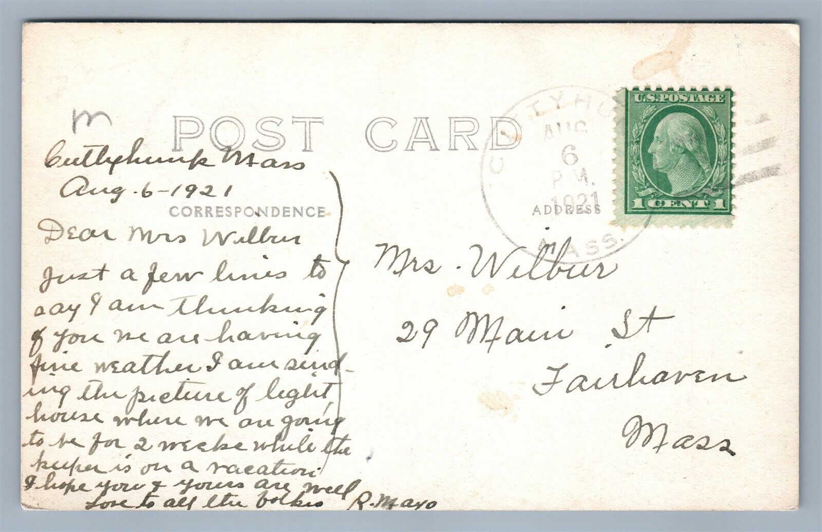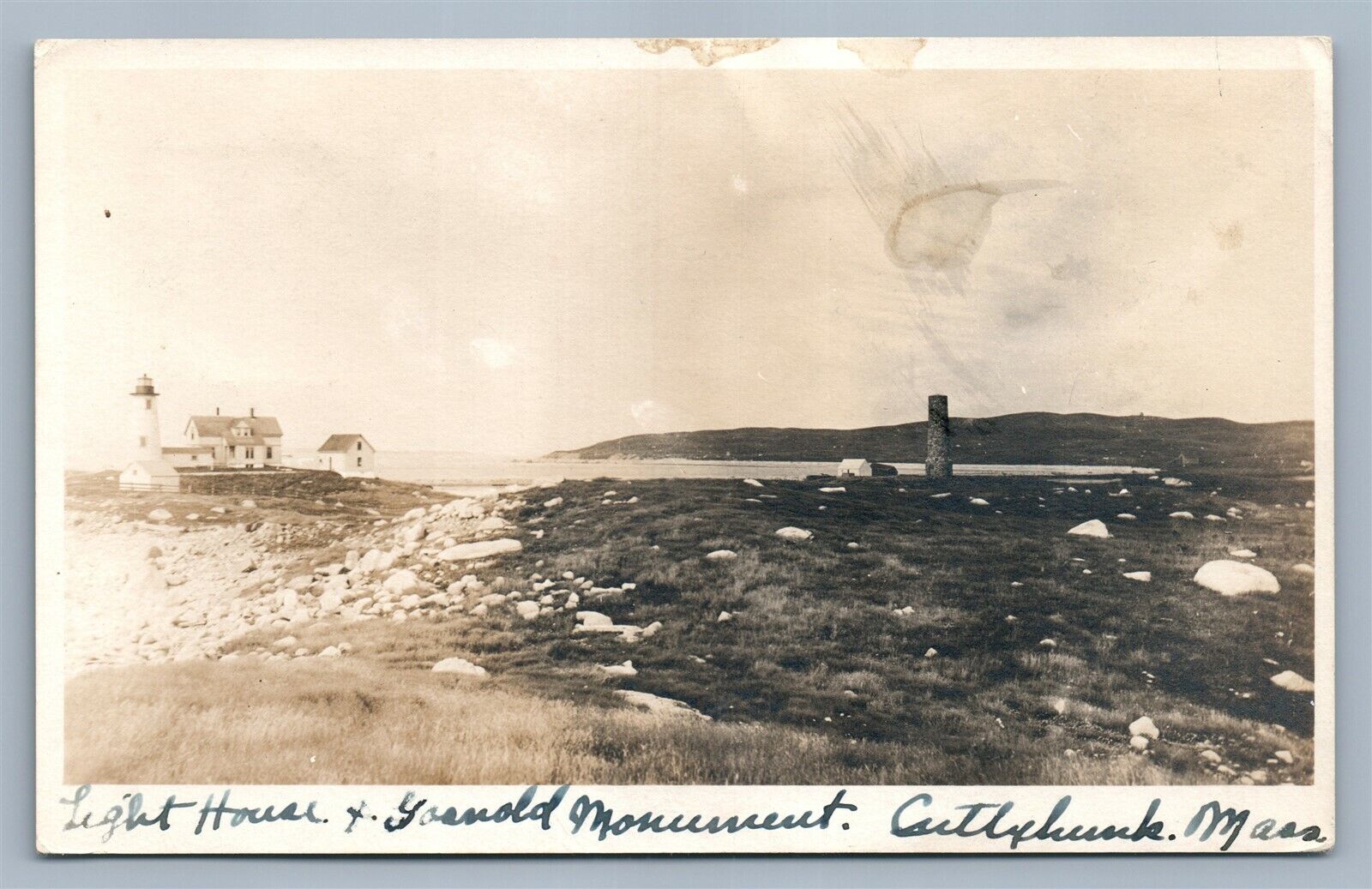 CUTTYHUNK MA LIGHTHOUSE & GOSNOLD MONUMENT ANTIQUE REAL PHOTO POSTCARD RPPC