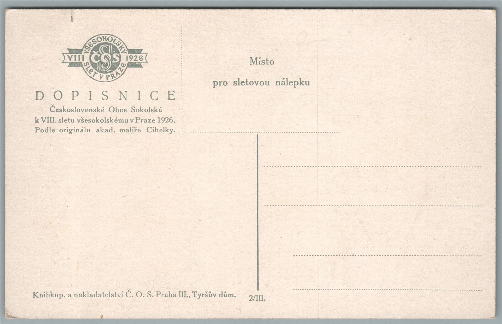 CZECH REPUBLIC 1926 VIII SLET VSESOKOLSKY V PRAZE ANTIQUE POSTCARD