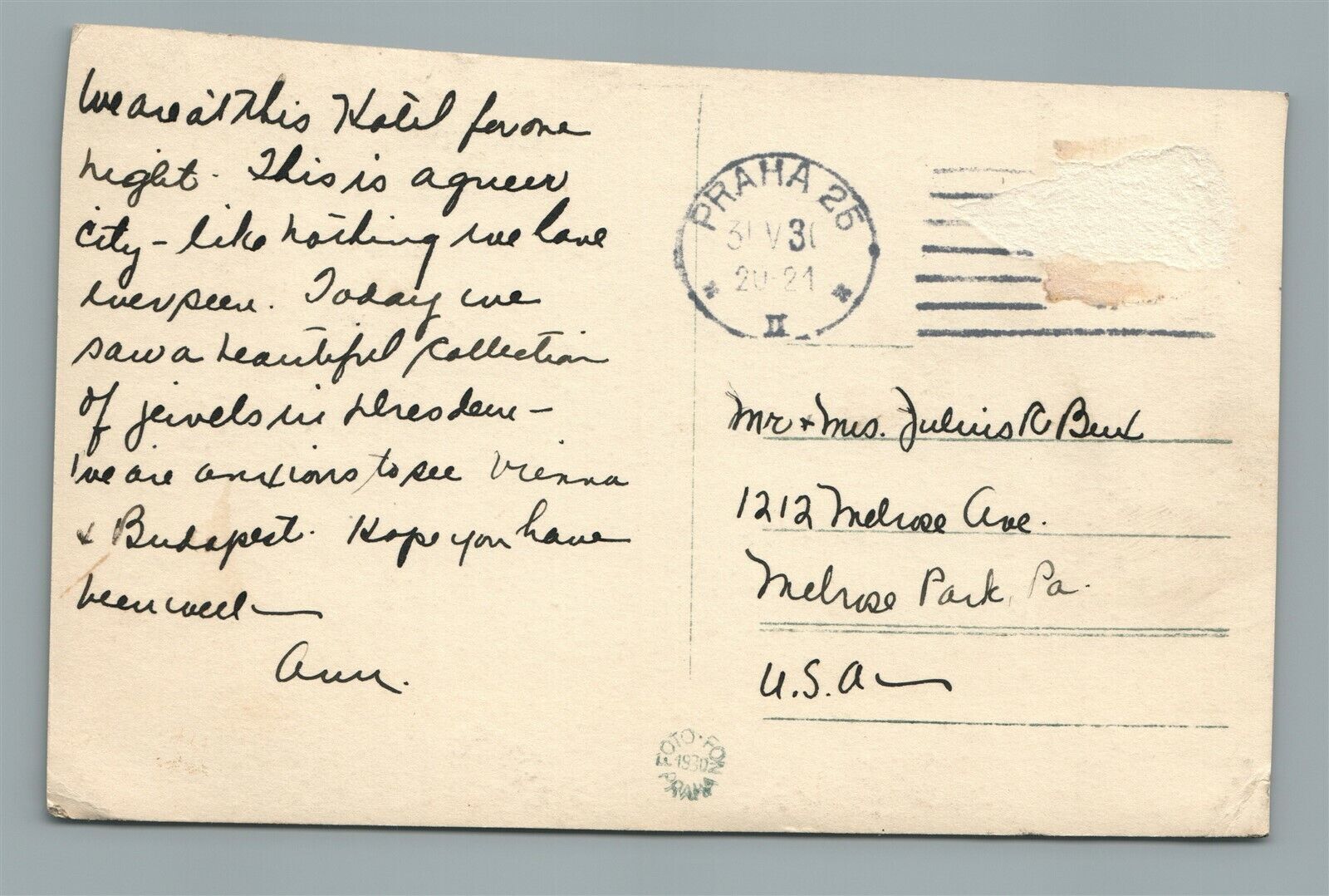 CZECH REPUBLIC PRAHA GRAND HOTEL SROUBEK VINTAGE REAL PHOTO POSTCARD RPPC w/CARS