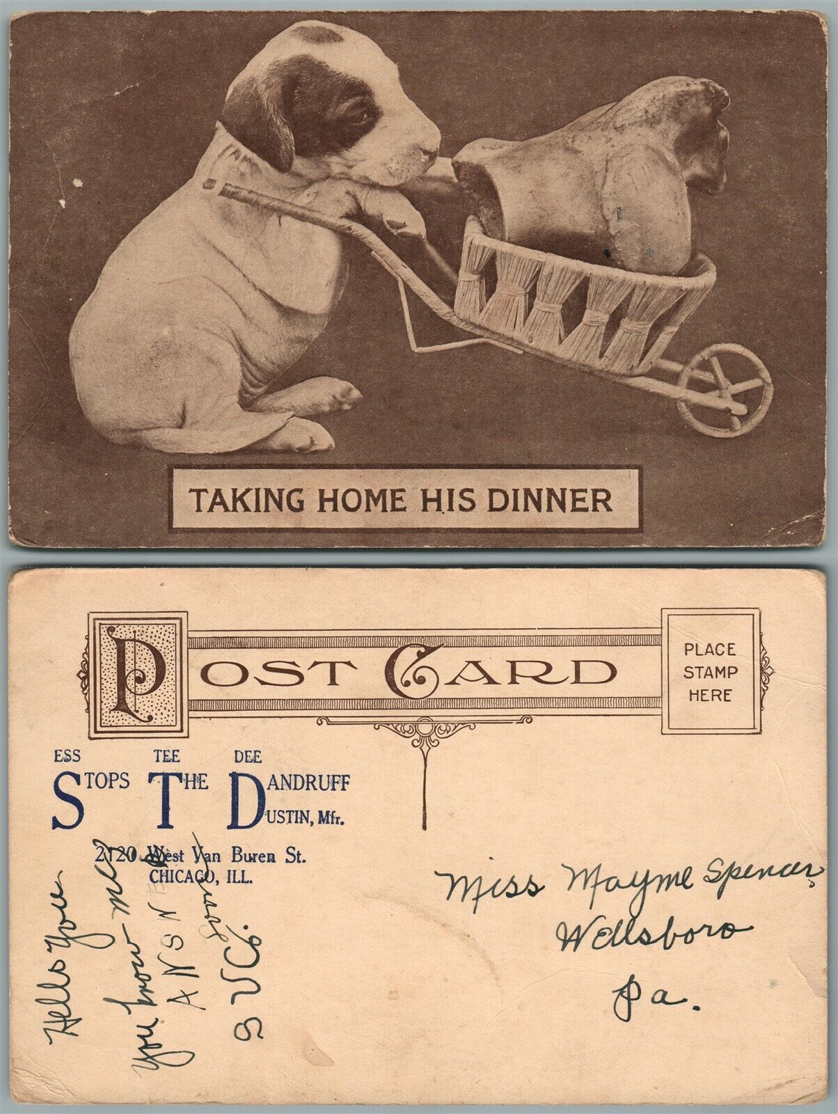 Dandruff Dustin Mfr. Chicago IL ADVERTISING ANTIQUE POSTCARD DOG CUTE PUPPY