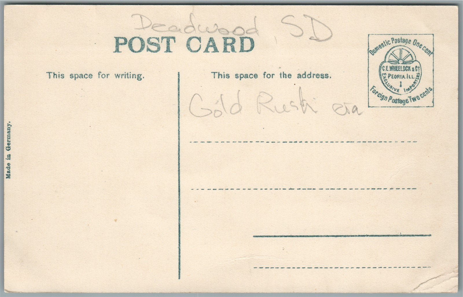 DEADWOOD SD GOLD RUSH ERA ANTIQUE POSTCARD
