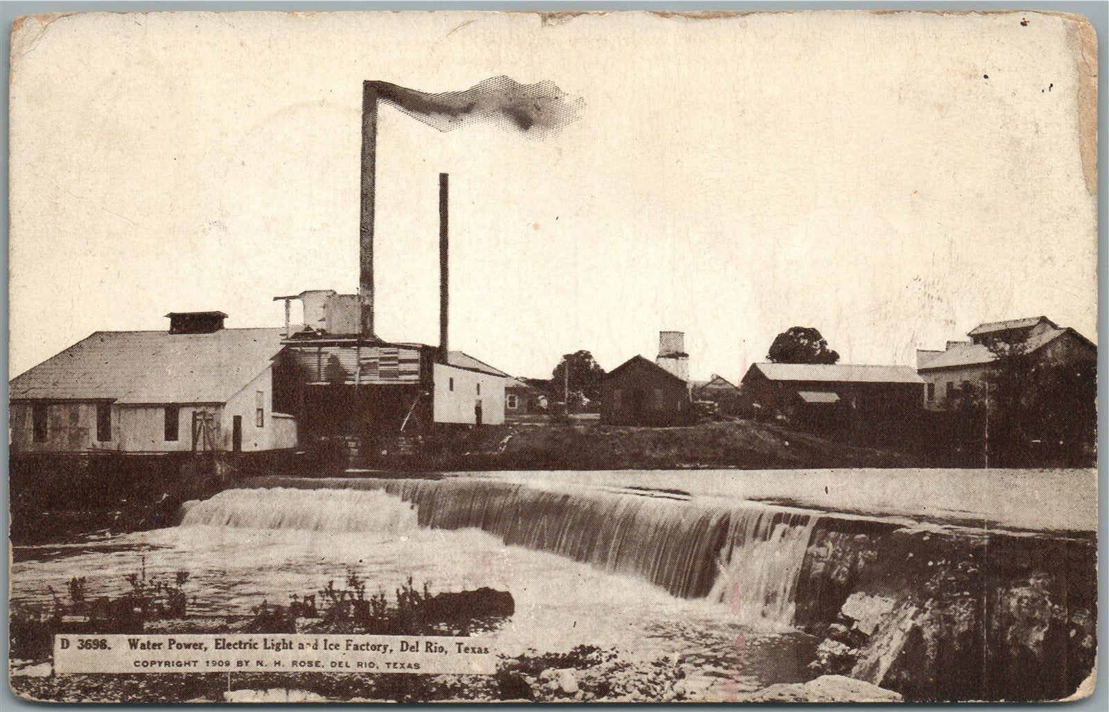 DEL RIO TX WATER POWER ELECTRIC LIGHT AND ICE FACTORY ANTIQUE POSTCARD