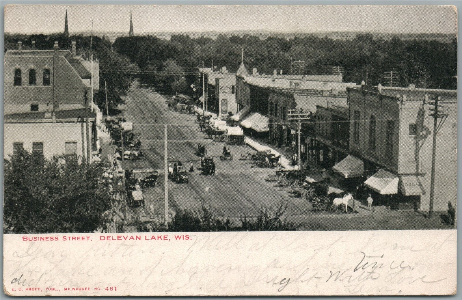 DELEVAN LAKE WI BUSINESS STREET ANTIQUE POSTCARD