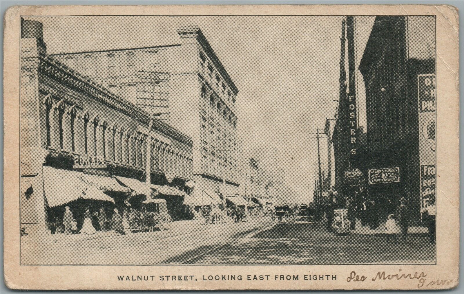 DES MOINES IA WALNUT STREET ANTIQUE POSTCARD