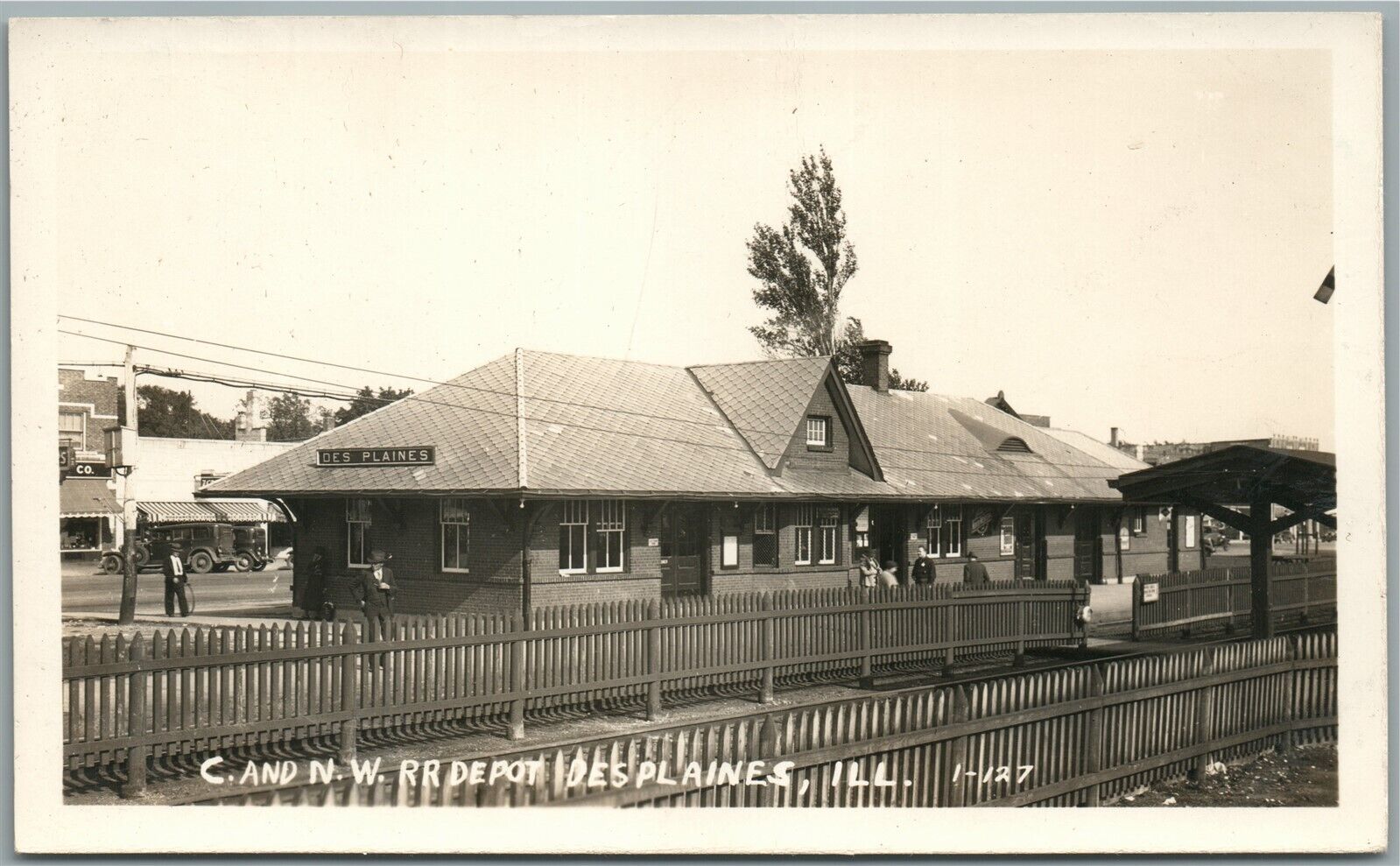 DES PLAINES IL RAILROAD STATION RAILWAY DEPOT VINTAGE REAL PHOTO POSTCARD RPPC