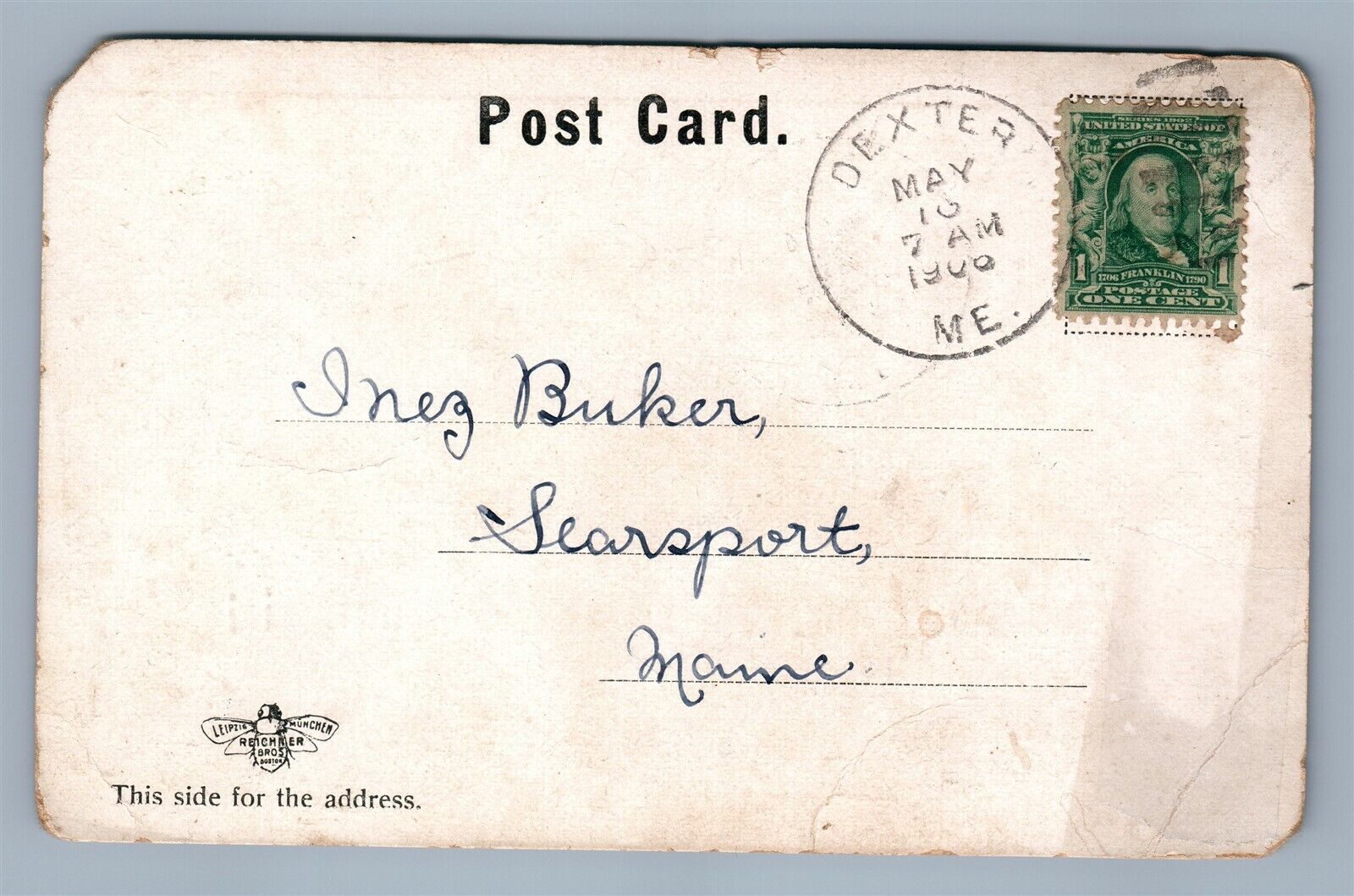 DEXTER ME ABBOT MEMORIAL LIBRARY TOWN HALL ANTIQUE REAL PHOTO POSTCARD RPPC