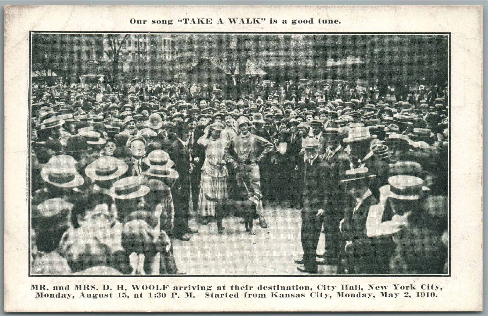 DISTANCE WALKERS D.H.WOOLF NEW YORK CITY HALL ANTIQUE POSTCARD KANSAS CITY MO