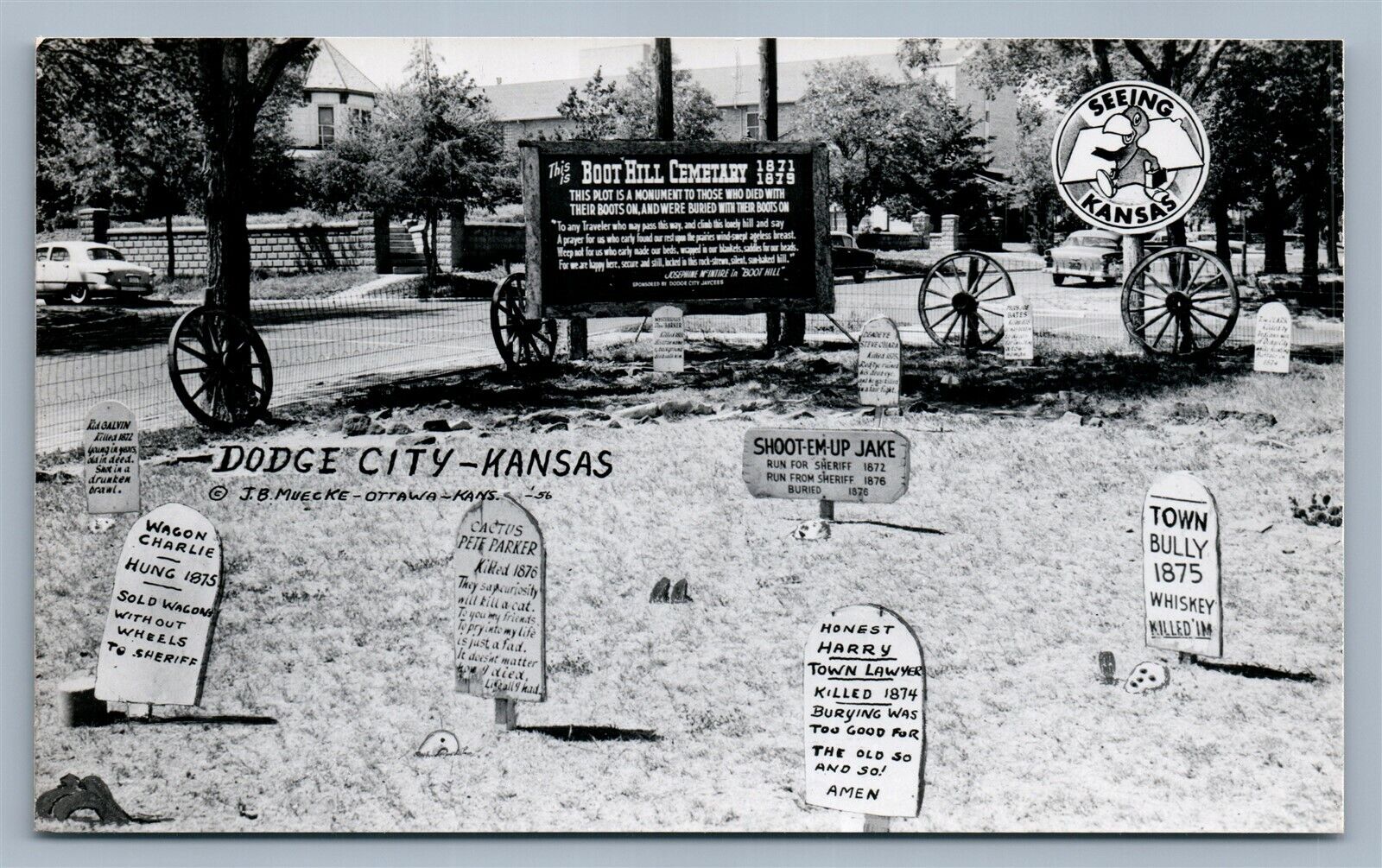 DODGE CITY KS 1956 VINTAGE REAL PHOTO POSTCARD RPPC BOOT HILL CEMETARY