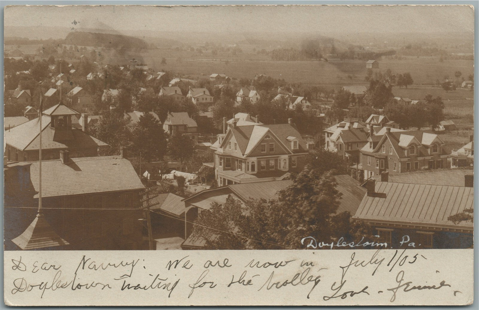 DOYLESTOWN PA GENERAL VIEW 1905 ANTIQUE REAL PHOTO POSTCARD RPPC