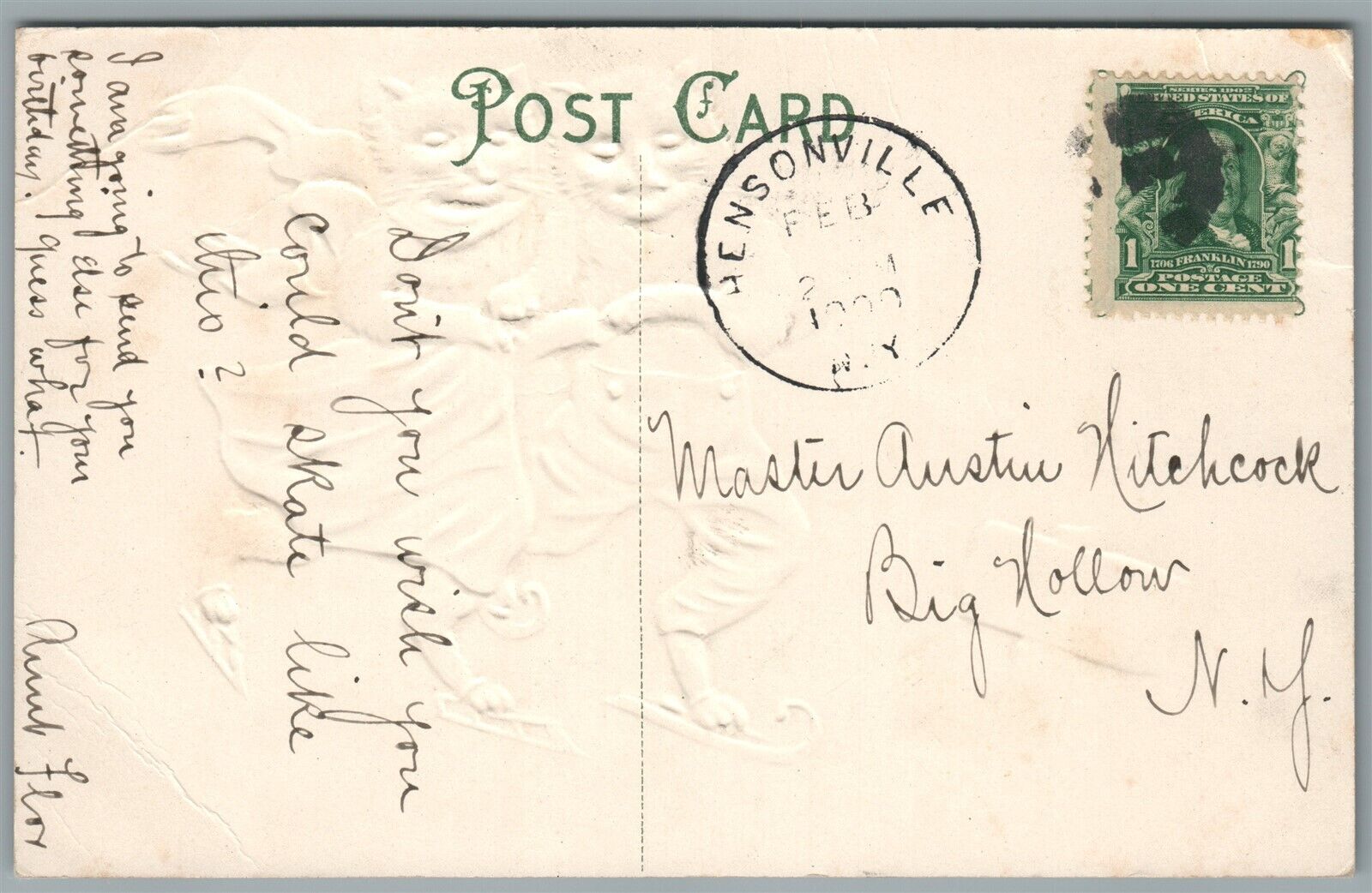 DRESSED CATS ICE SKATING ANTIQUE POSTCARD