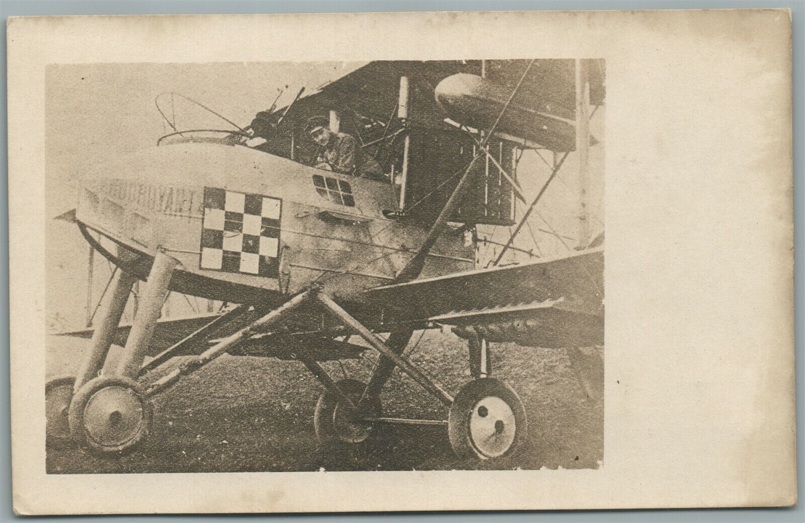 EARLY AVIATION AVIATOR in BIPLANE ANTIQUE REAL PHOTO POSTCARD