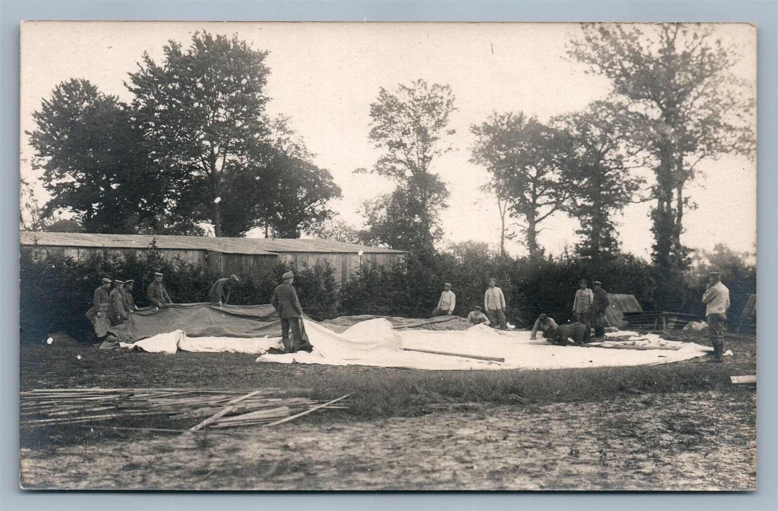 EARLY AVIATION GERMAN SOLDIERS w/ PARACHUTE ANTIQUE REAL PHOTO POSTCARD RPPC