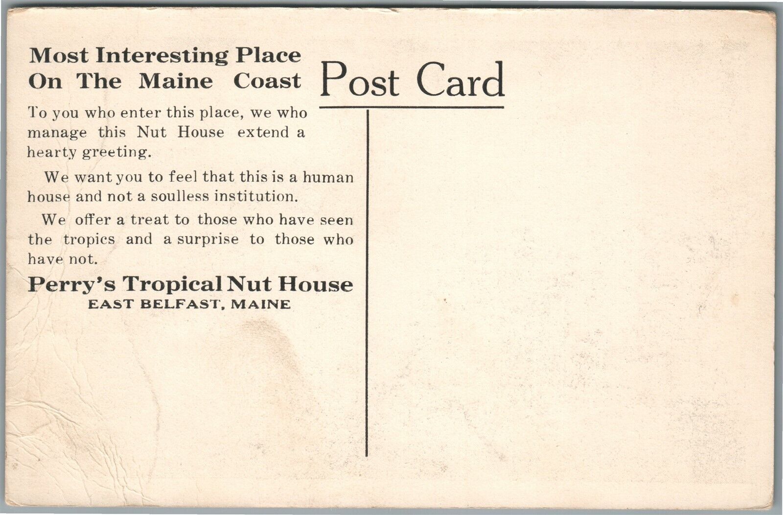 EAST BELFAST ME PERRY'S TROPICAL NUT HOUSE ANTIQUE POSTCARD