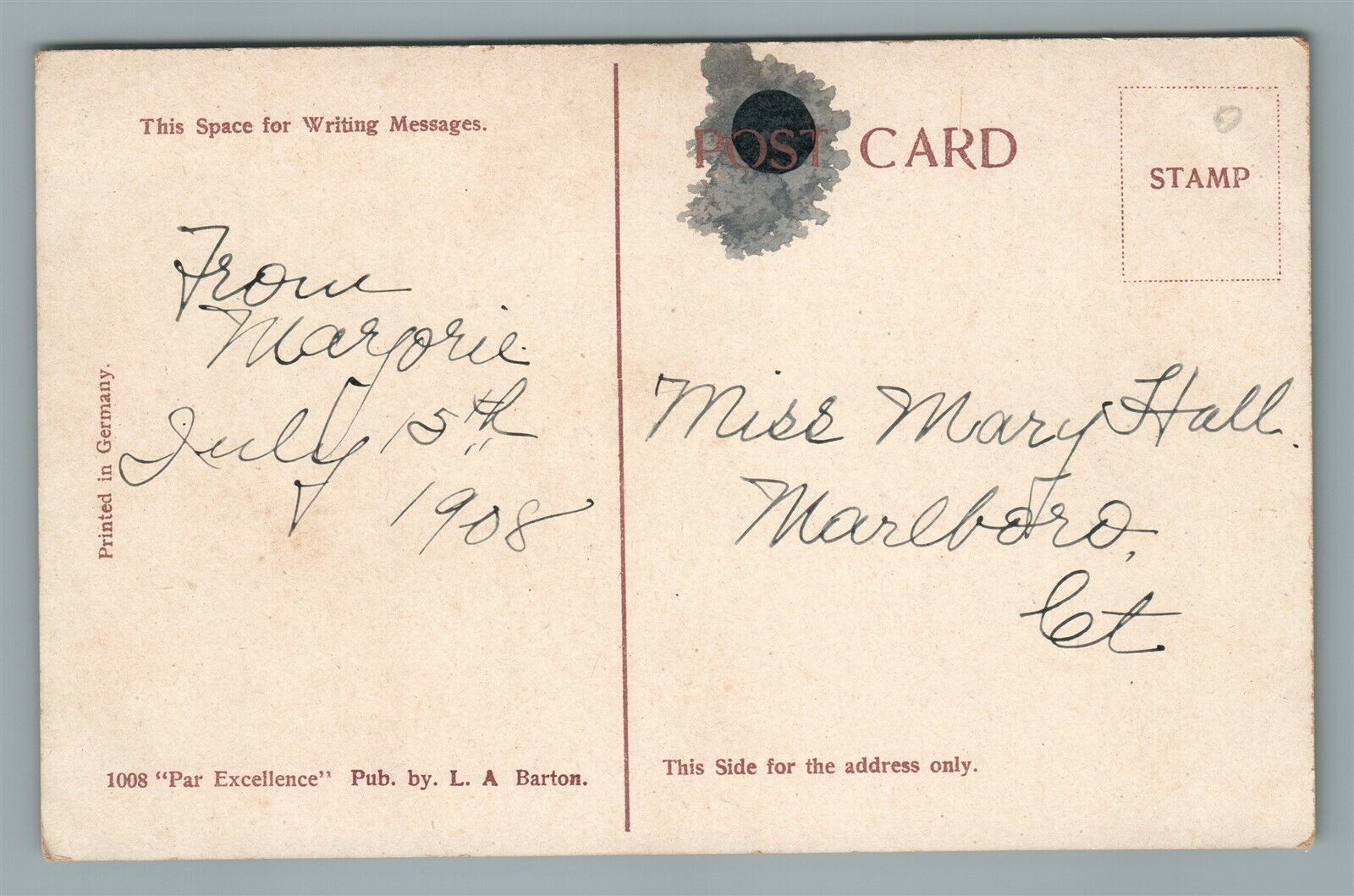 EAST HAMPTON CT CHURCH GREEN FROM BARTON'S DRUG STORE ANTIQUE POSTCARD