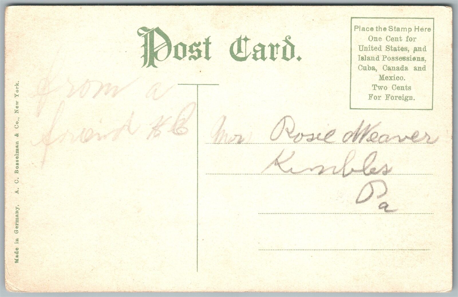 EAST HAWLEY PA SCHOOLHOUSE HILL ANTIQUE POSTCARD